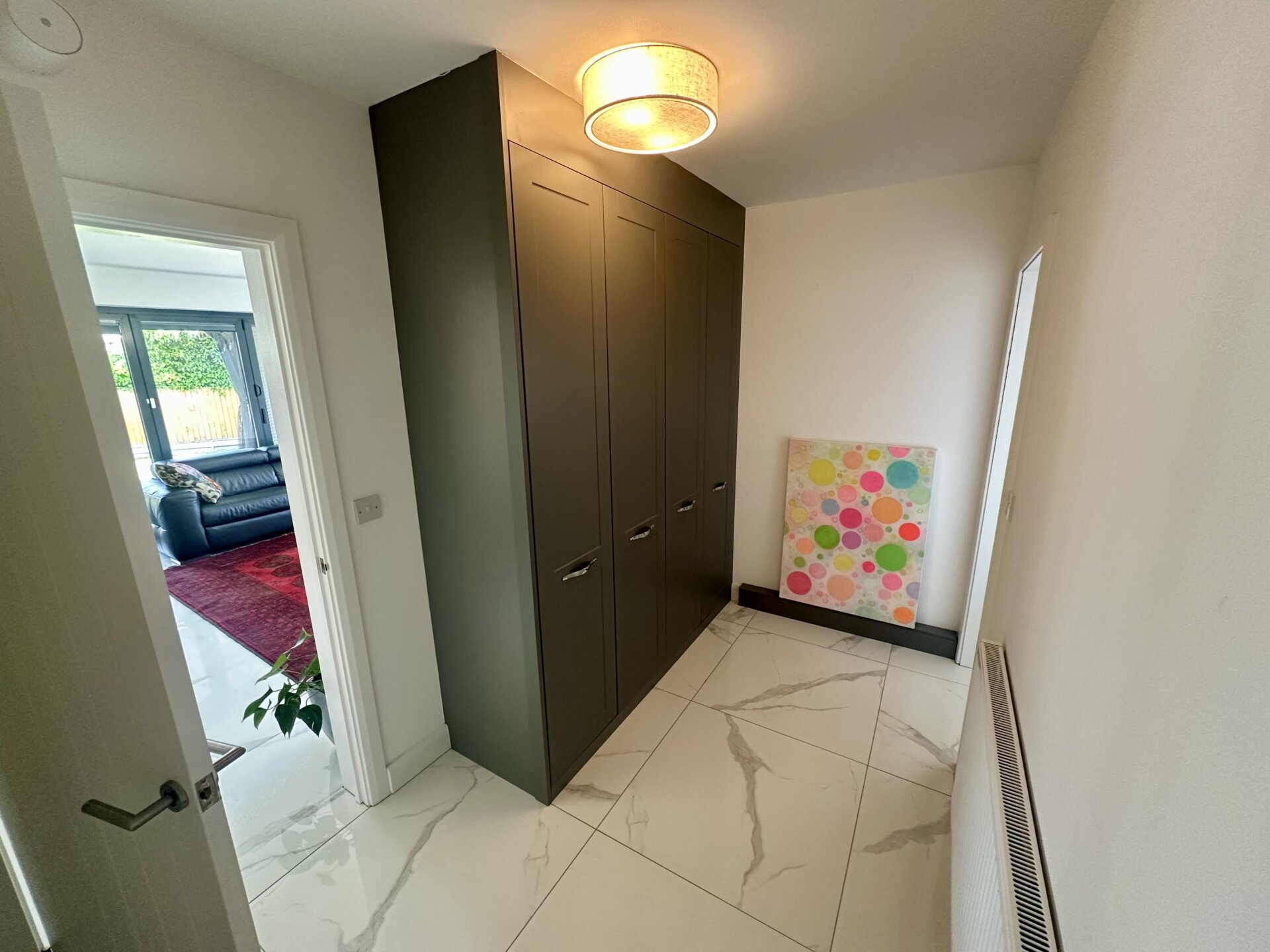 A welcoming entrance space, ideal for storing coats and shoes while offering a pleasant introduction to the home’s clean and modern aesthetic.