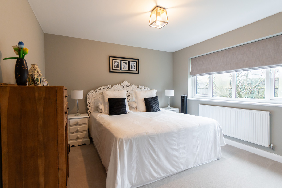 A spacious double bedroom at the rear of the property with pleasant views over the garden. Perfect as a main guest room or second bedroom.