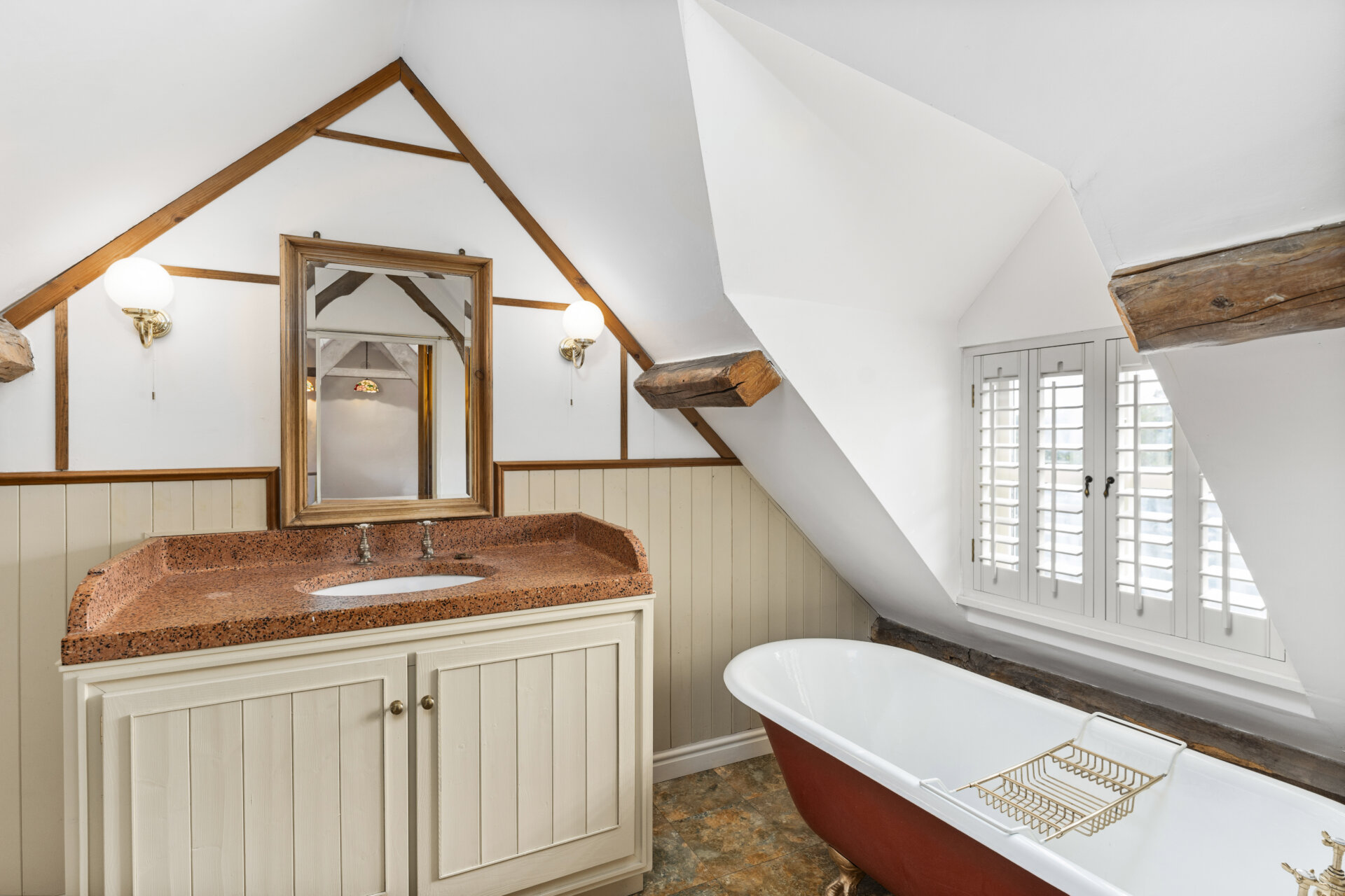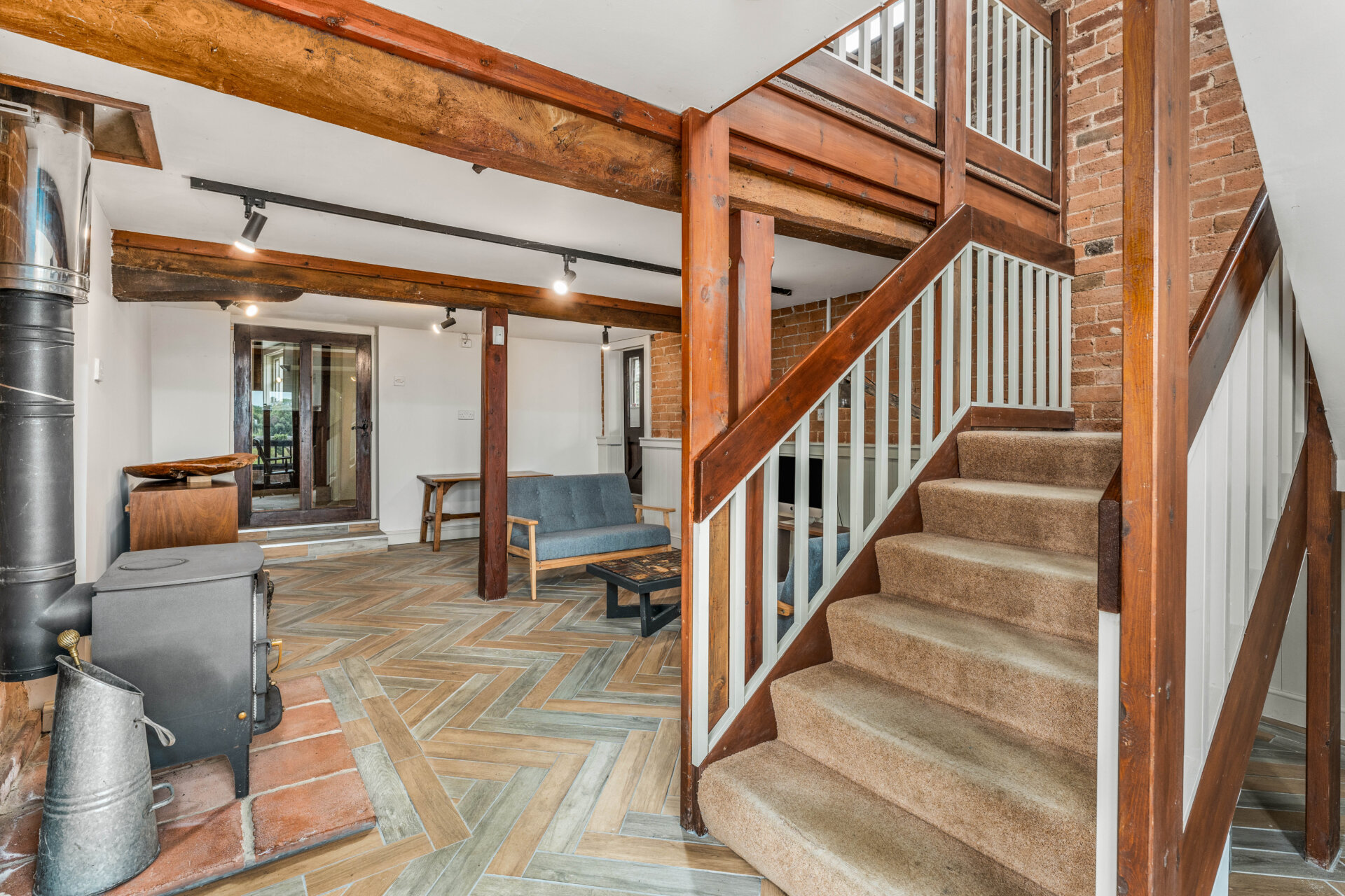 Across the upper floors are four beautifully appointed double bedrooms, all served by high-quality bath or shower rooms, including a superb principal suite with vaulted ceiling, exposed beams and a luxurious period-style bathroom.