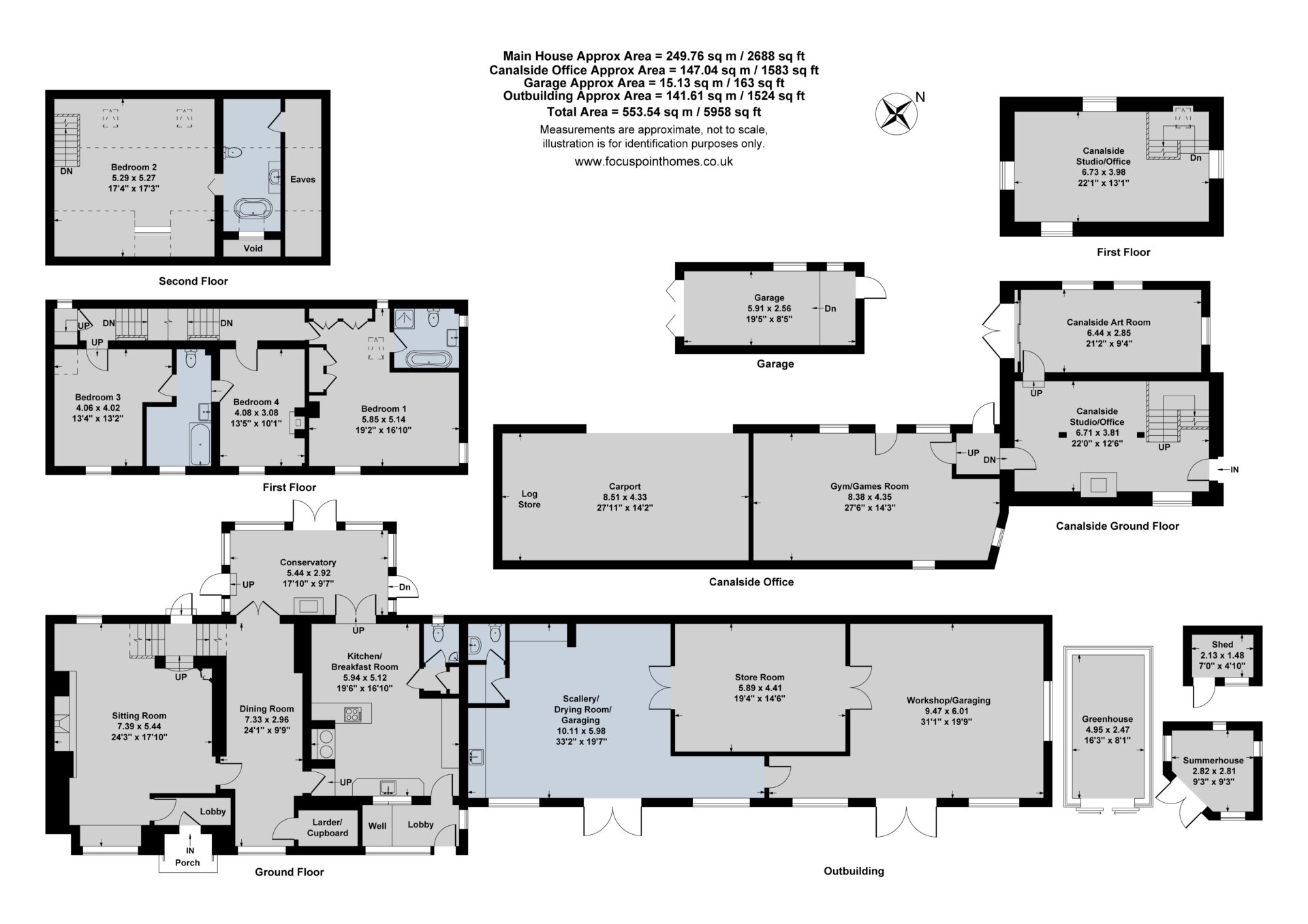 Beyond the main house, the property’s ancillary accommodation significantly enhances its appeal. An adjoining barn of over 1,500 sq ft offers exceptional versatility, currently arranged as a scullery/utility area, large store and workshop, with clear potential for conversion to further accommodation or alternative uses (subject to consent). In addition, the detached wharfside studio provides a characterful workspace or potential annexe, enjoying elevated views across the canal and countryside.
