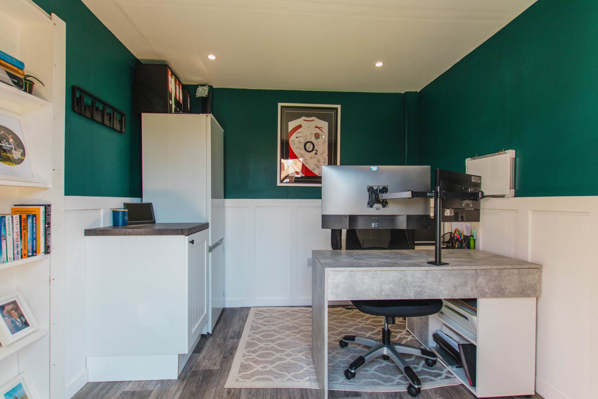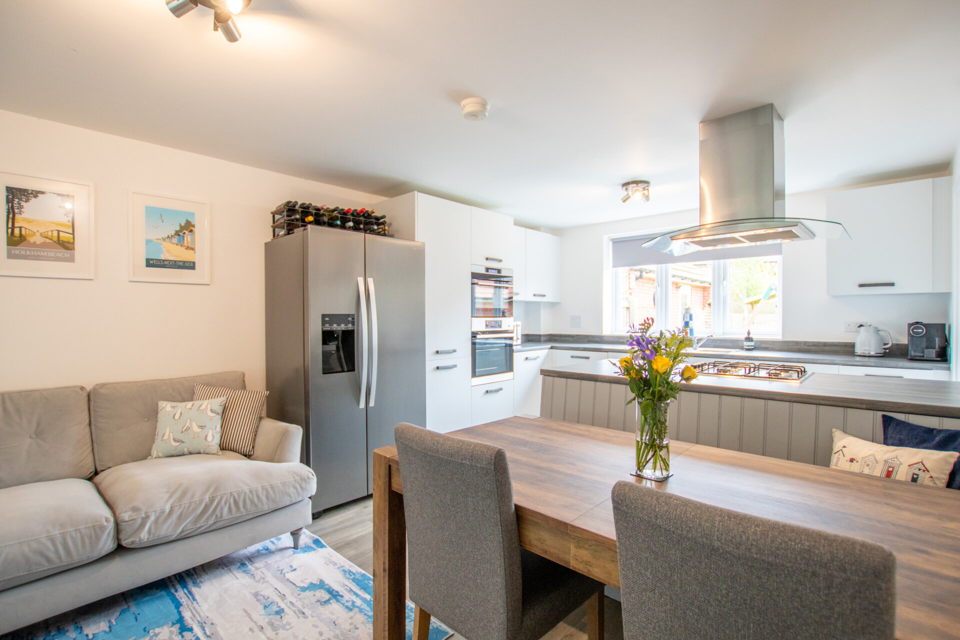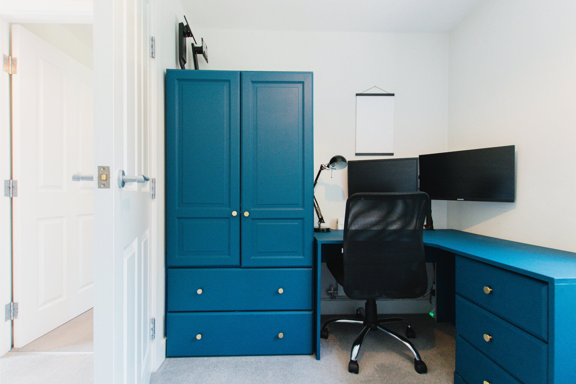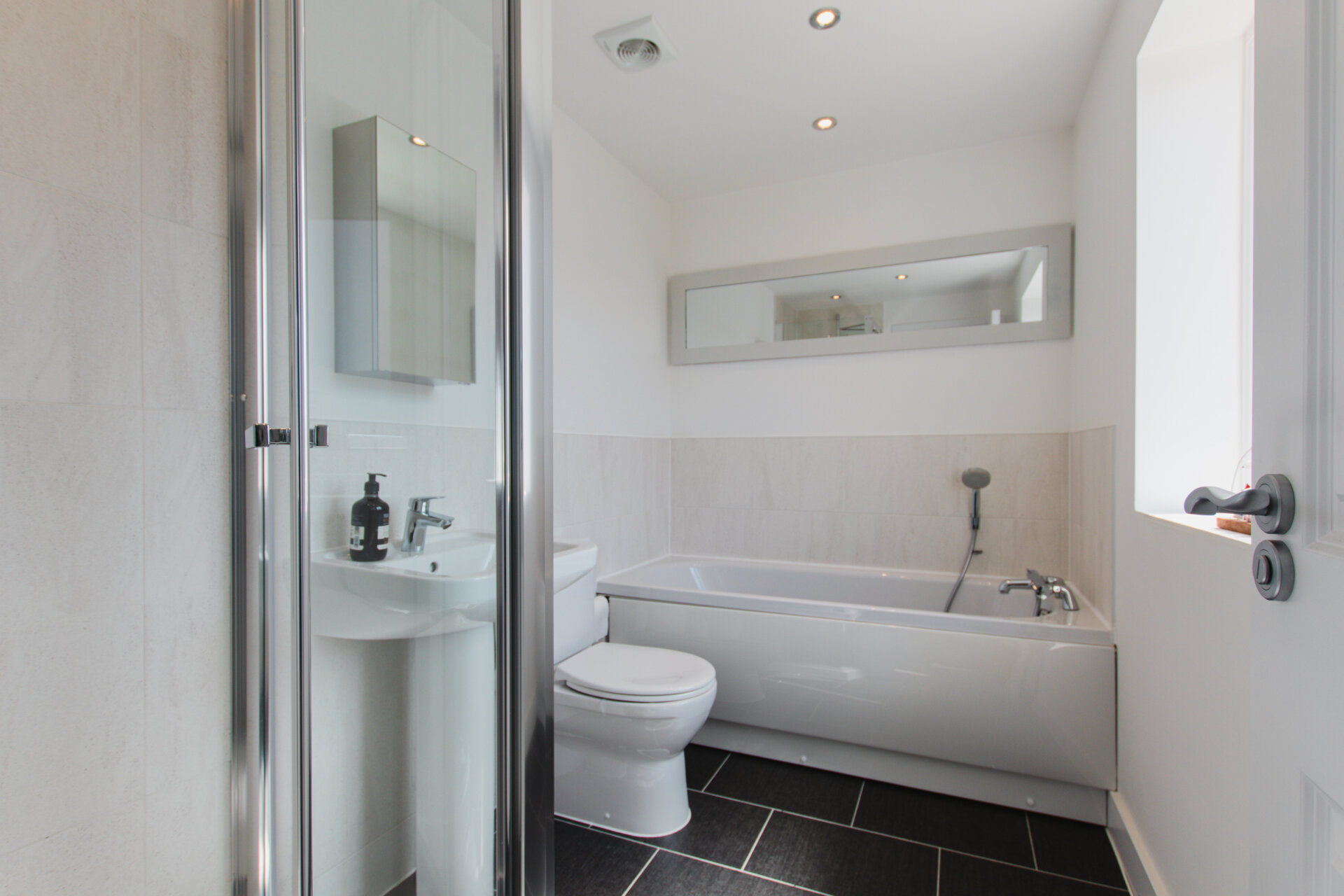 A beautifully styled, light & airy modern detached family home that is well proportioned throughout, and caters for modern family living superbly. The house has been kept in impeccable condition, and all viewers are sure to appreciate it’s move-in-ready condition. After inspecting the floorplan you’ll notice the extra reception room on the ground floor, and the very practical utility room, both huge selling features for buying a family home, and having a separate space for a potential playroom or second home office. Second, as you’ll see the rear of the garage has been converted to offer a study, and this conversion has been professionally done and is a really comfortable, year round usable space. The large open kitchen dining is perfect for entertaining, and main sitting room a generous size for all the family to relax. A lovely feature of this room are the double doors opening onto the South facing garden patio. All bedrooms are good sizes, with all four rooms having bespoke built-in storage. The views out of the windows of the front aspect are particularly nice, as you look onto an established row of trees, giving great privacy, but also changing with the seasons. The bathroom and ensuite are modern and stylish, with a neutral tile for the splashback areas. The garden is very family friendly, as seen in the photos having ample space for climbing frames, playing areas, gardening areas, and patio entertaining areas, there is a side gate to the driveway, and a side door into the garage office, which also has a ‘secret’ door into the front of the garage. There is a two vehicle driveway in front of the garage, adjacent to the house.