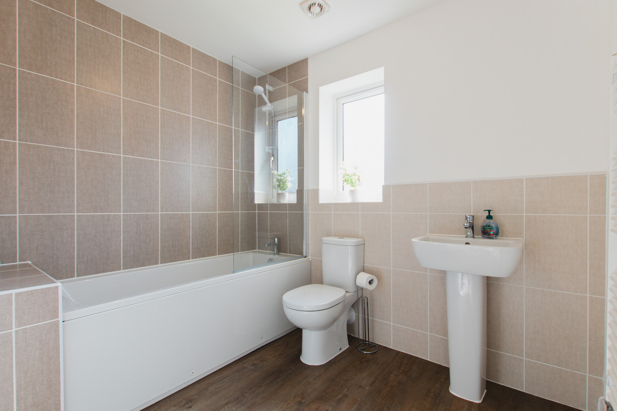 The family bathroom is again a good size, having bathtub with shower over, wash basin, W/C and tiled splashback areas.