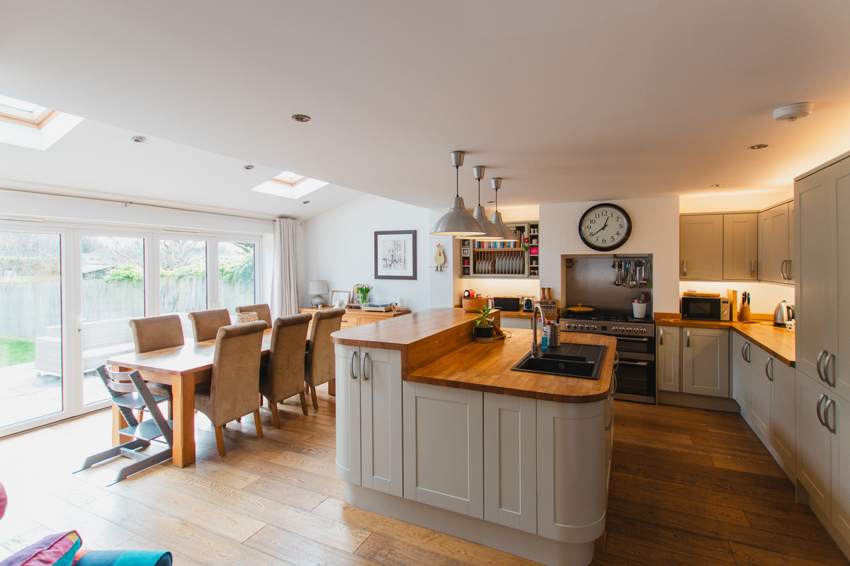 There are many features of the house that stand out, starting kerbside, the house stands proud set back from the road, with the large rounded bay window, typical of its era, the entrance hallway with the original tiling and original wooden doors throughout. The engineered oak flooring throughout the open plan kitchen dining room, featuring a gorgeous light sage shaker suite with wood worktops, the vaulted ceiling of the extension, with bi-folding doors onto the large patio area, these are just. a few of the brilliant features of the house. There is a wet under floor heating system to kitchen dining room, utility and shower room. Electric under floor heating in bathroom.