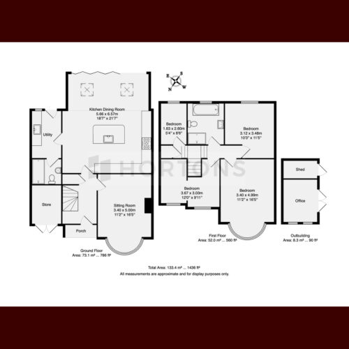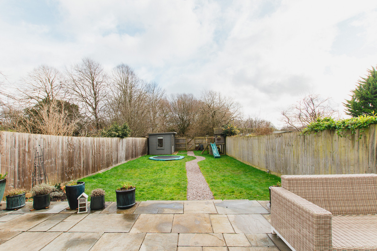 The garden is a brilliant size, with the aforementioned large patio, large lawned area with play area for children, wooden outbuilding currently used as a home office that is insulated, with light, power and internet connected, and having a store at the rear. The garden also backs onto a mini woodland area, not having any neighbours at the rear.