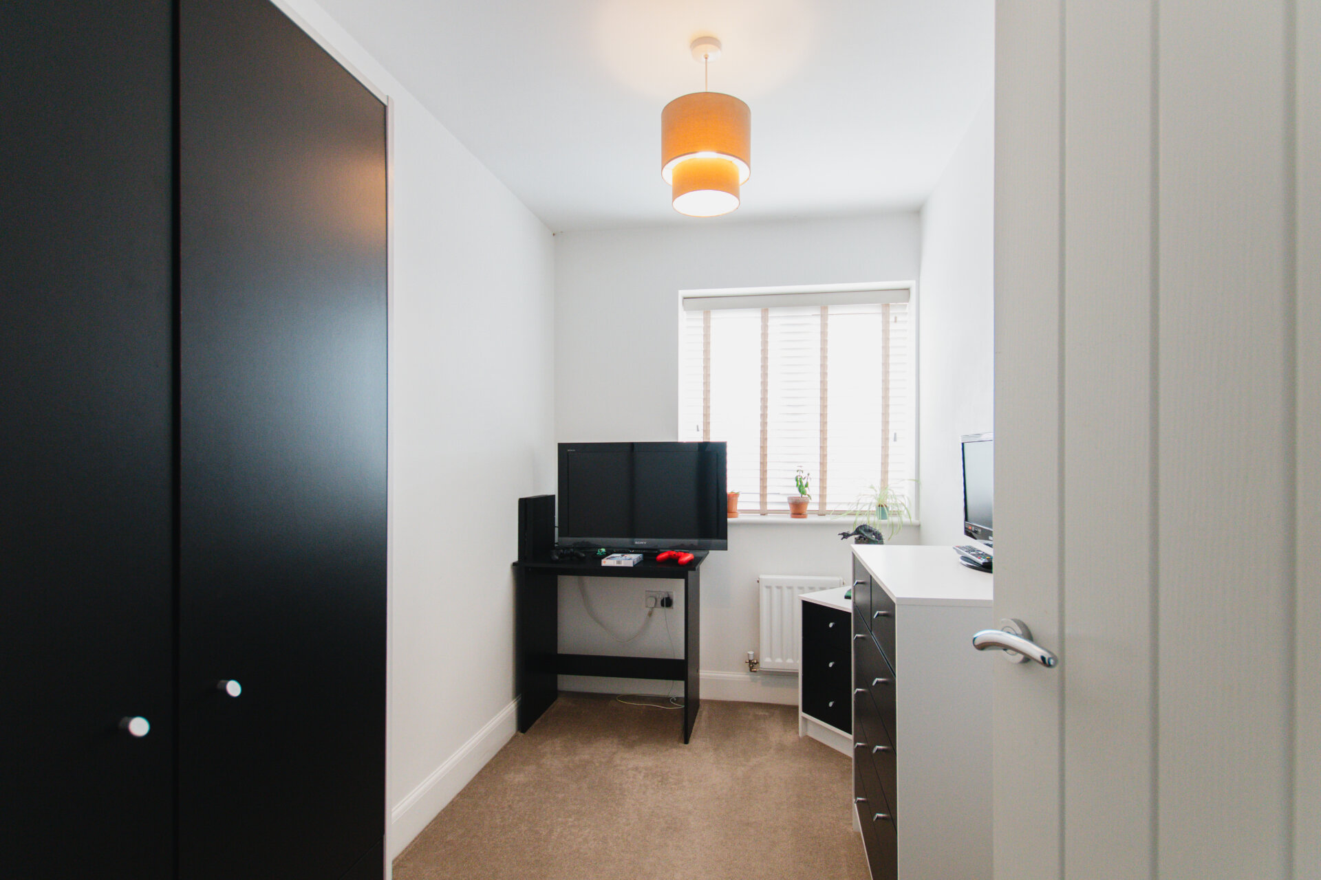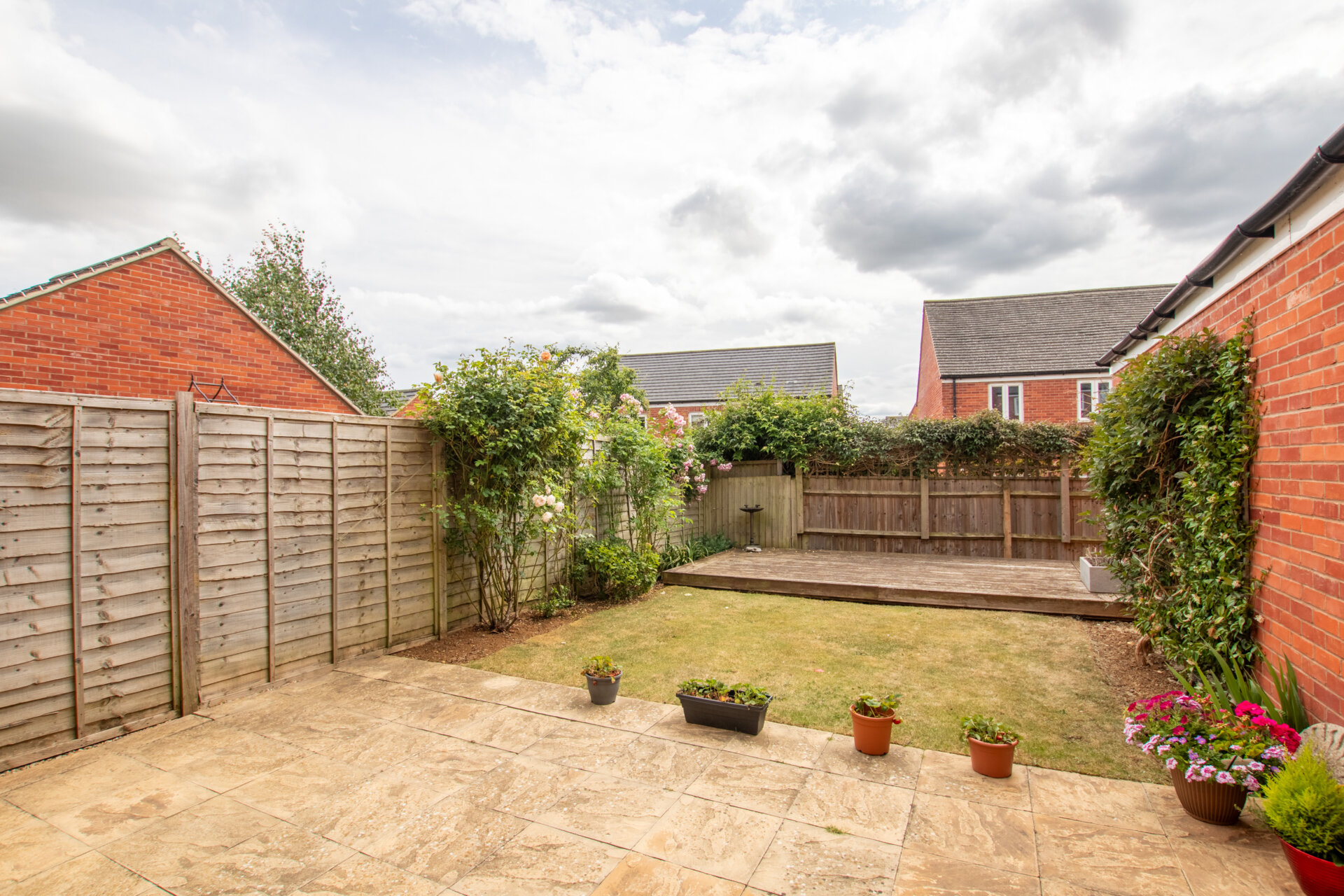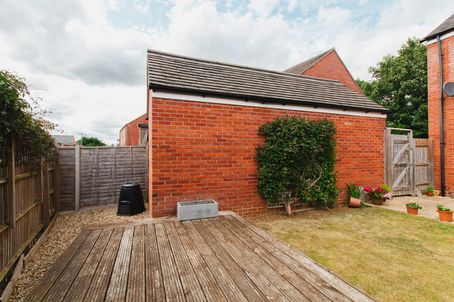 Outside, the private rear garden has been paved for ease of maintenance and offers a sunny, low-maintenance lawn & decking space for enjoying the outdoors. There is gated access to a garage and off-street parking, located adjacent to the property. The property sits on the edge of the development having field views.