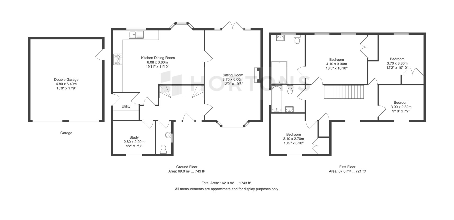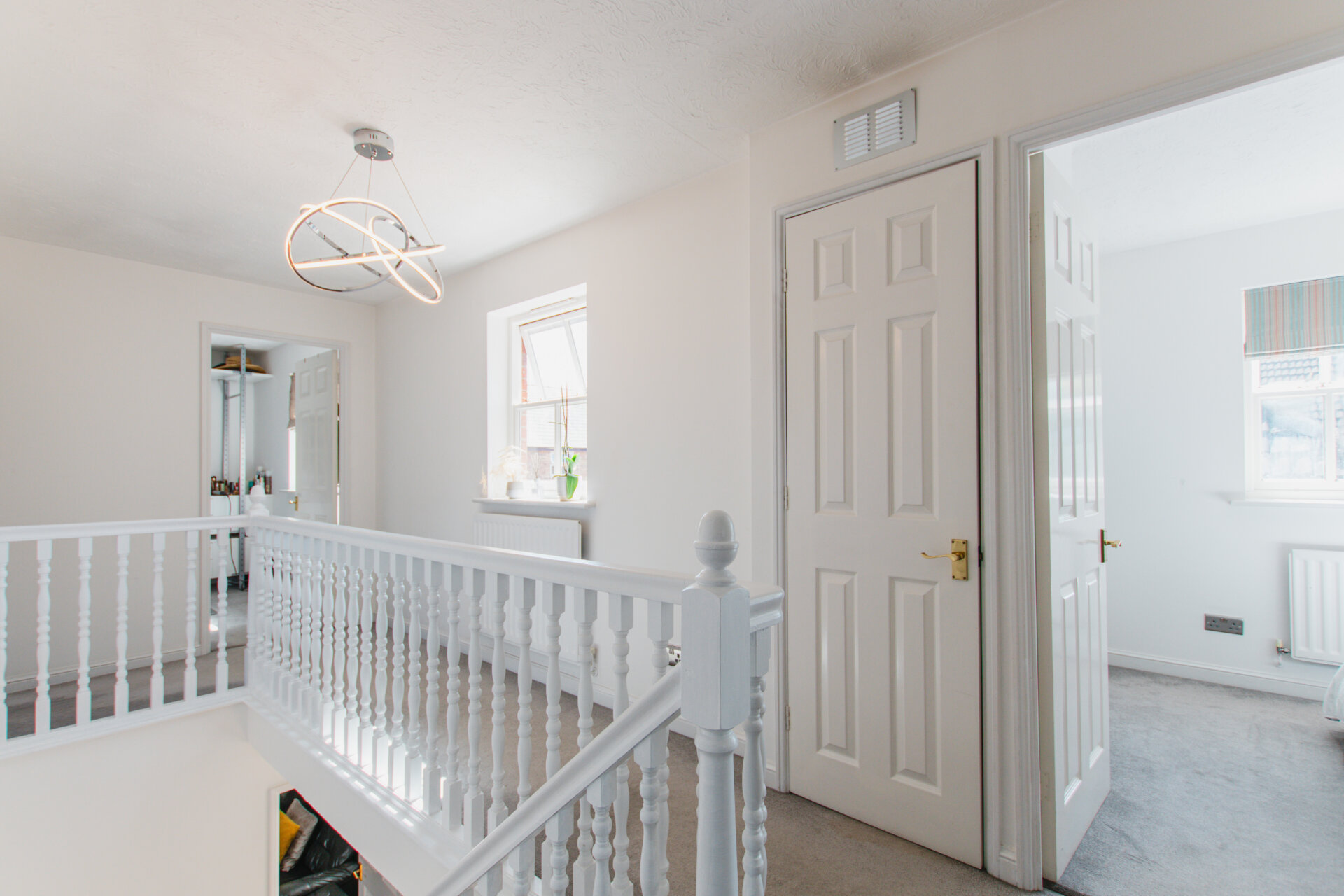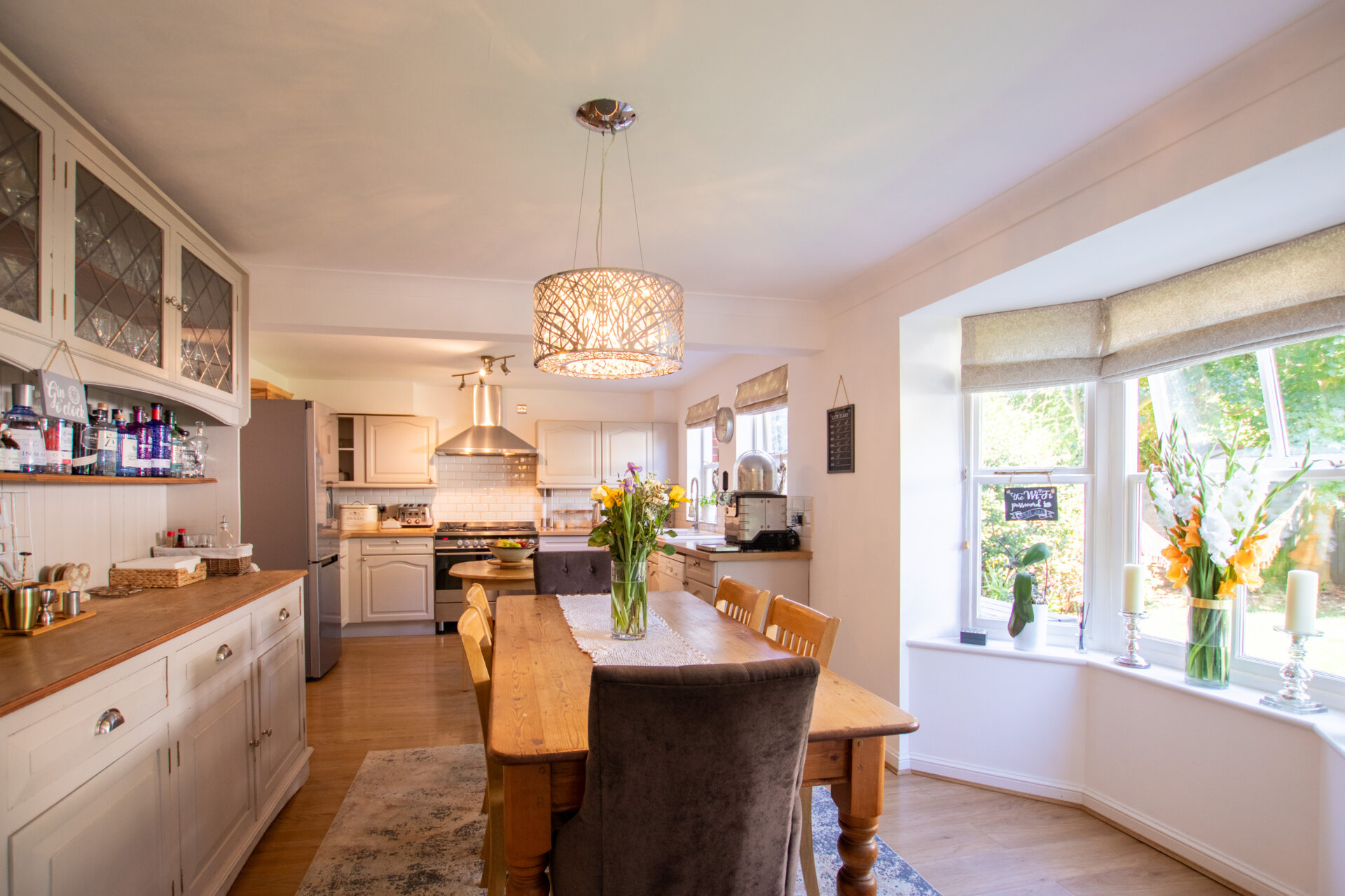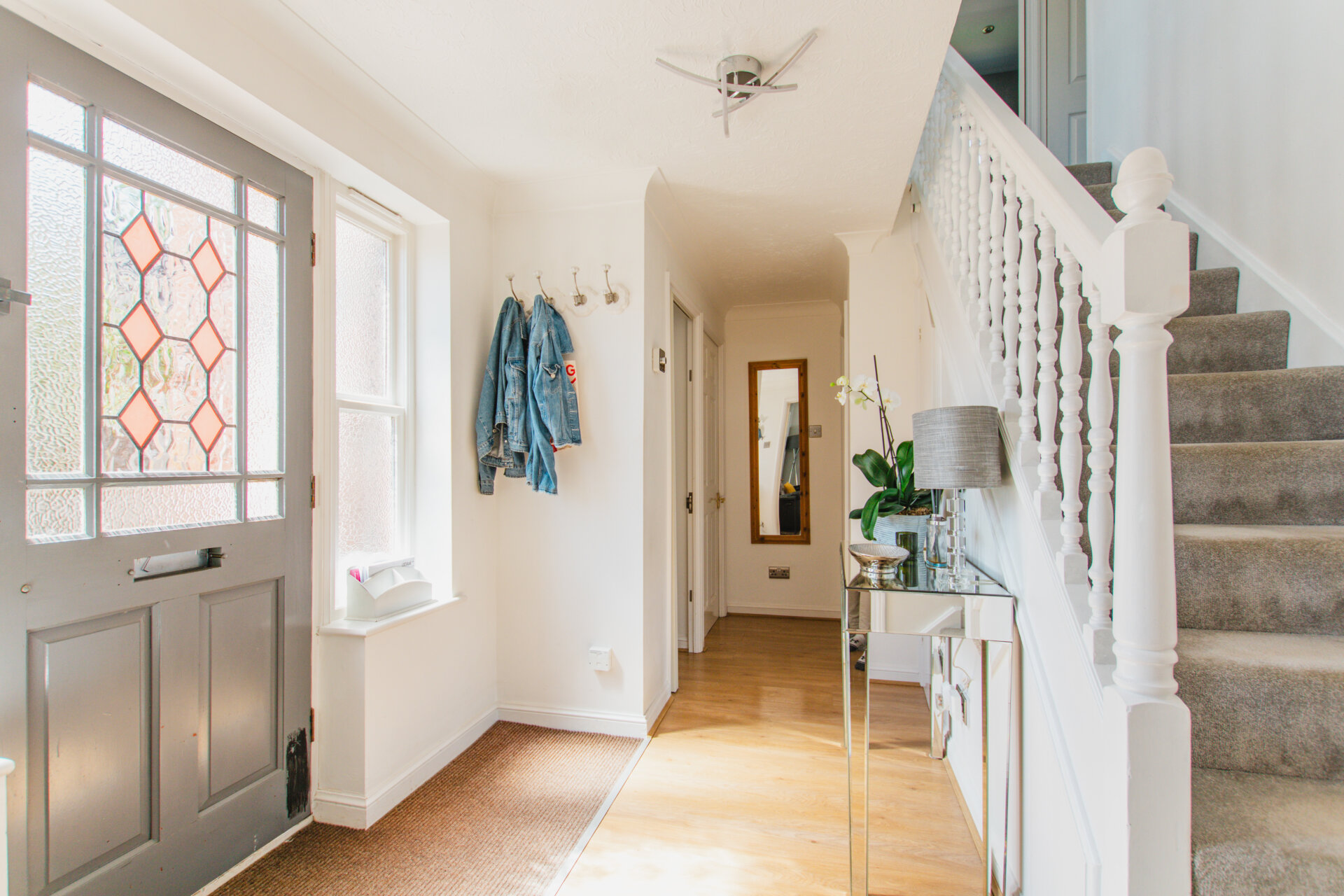 A beautifully presented, very light & modern detached family home. The house has a lovely family friendly flow to it, especially with the reconfigured open plan kitchen dining room. There is a ground floor office space, meaning no bedrooms are sacrificed for home working, and there is a spacious double garage with large driveway in front. Bathrooms are modern, including the large ensuite serving the master bedroom, a brilliant space. The house also features a large welcoming entrance hallway, cloakroom and practical utility room. The garden is a stunning feature of the house, enjoying a good degree of privacy and perfect for entertaining friends and family