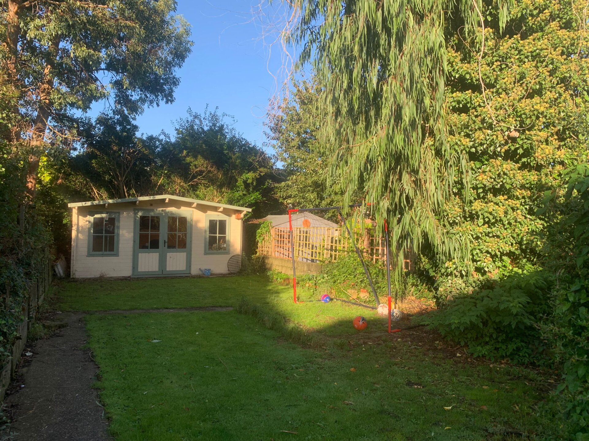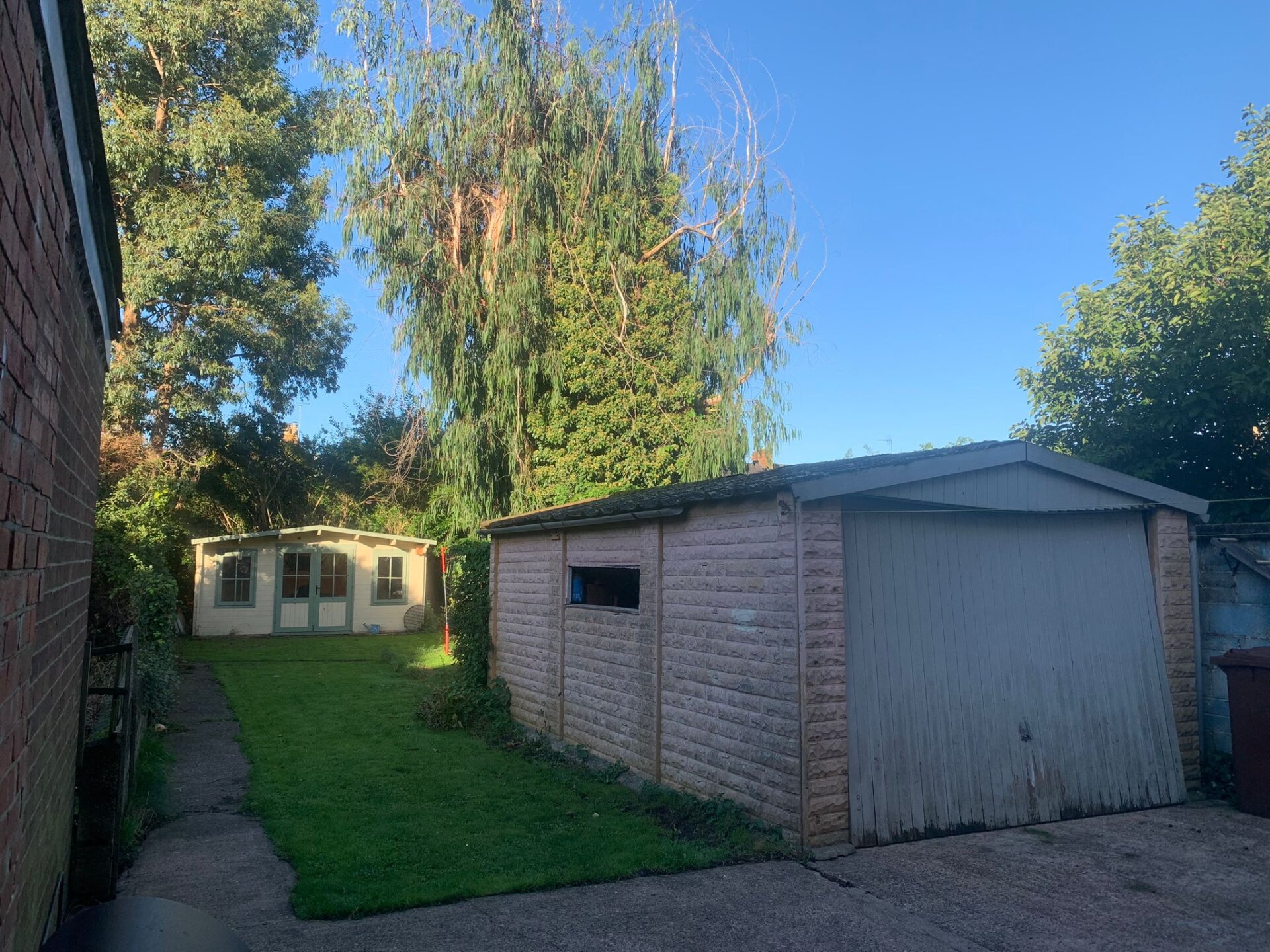 The house comprises an entrance hallway, sitting room, kitchen dining room, cloakroom, two bedrooms, family bathroom, garage, summerhouse, and generous garden, with rear access via a private gated driveway.