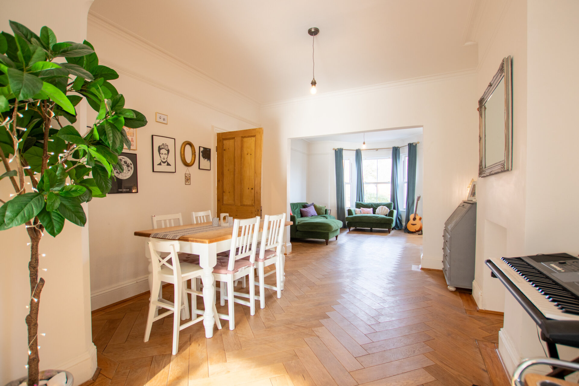 The tall ceilings and large bay sash windows allow the South facing aspect to pour natural light throughout the house. The accommodation comprises entrance hallway, sitting room, dining room, snug, cloakroom, kitchen, three bedrooms, family bathroom, large loft that is prime for conversion, office outbuilding, large garden, garage, driveway and EV charging.