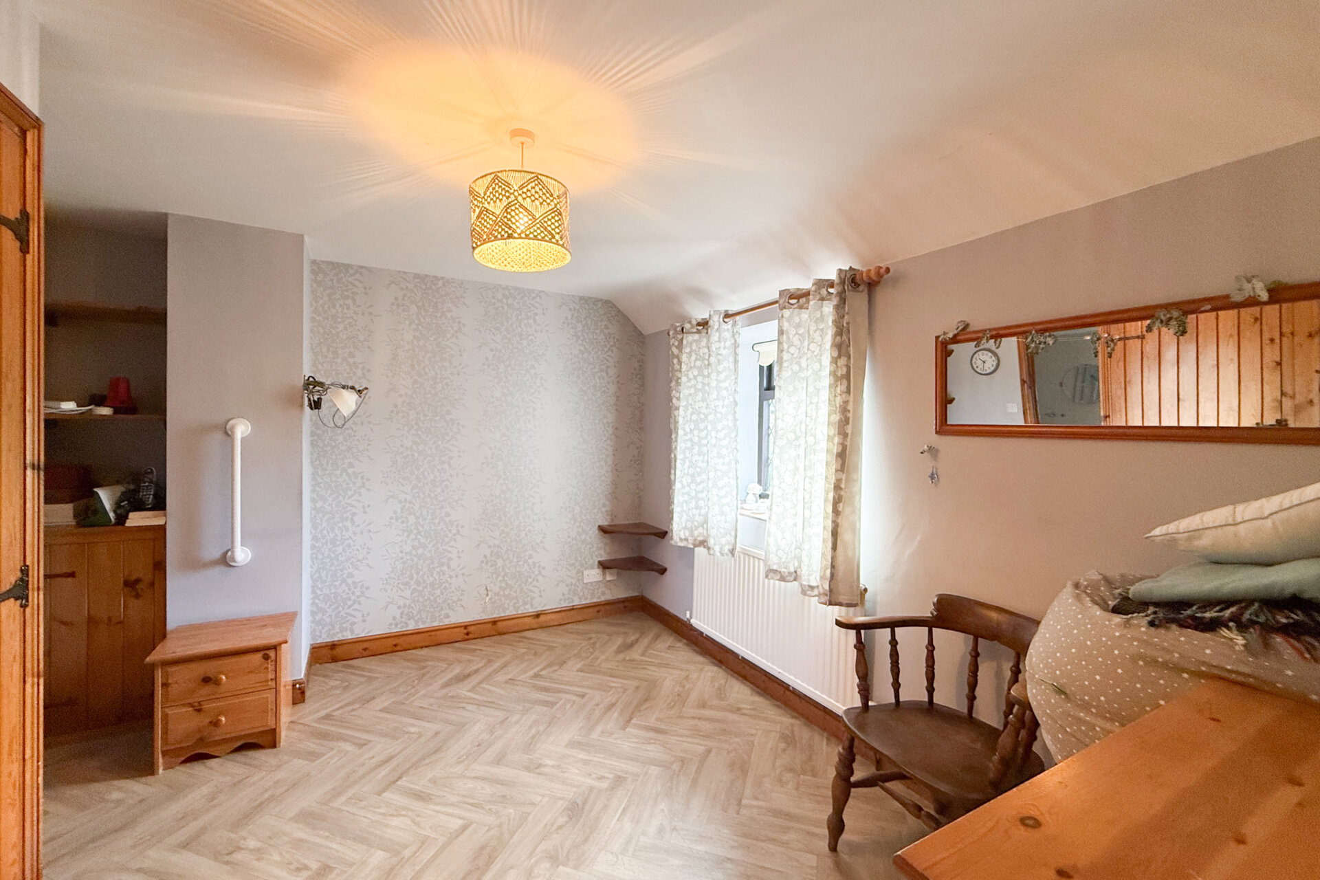 The sitting room benefits from a feature fireplace, providing a warm and inviting focal point, while the principal bedroom enjoys the advantage of an en-suite. Calor gas central heating is installed, with the boiler having been regularly maintained. Throughout the house feature locally made hand crafted, lockable double glazed wood windows installed in 2015