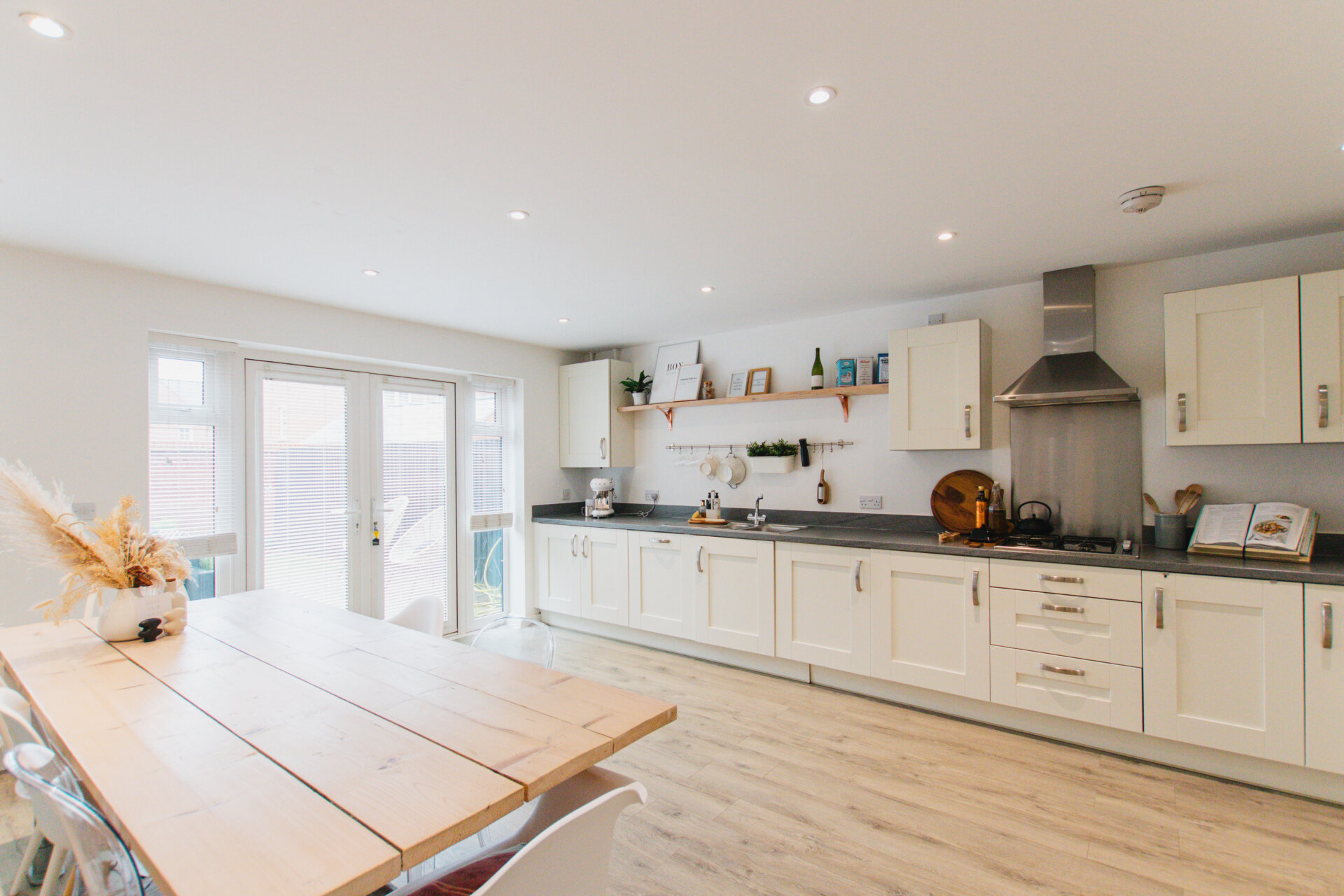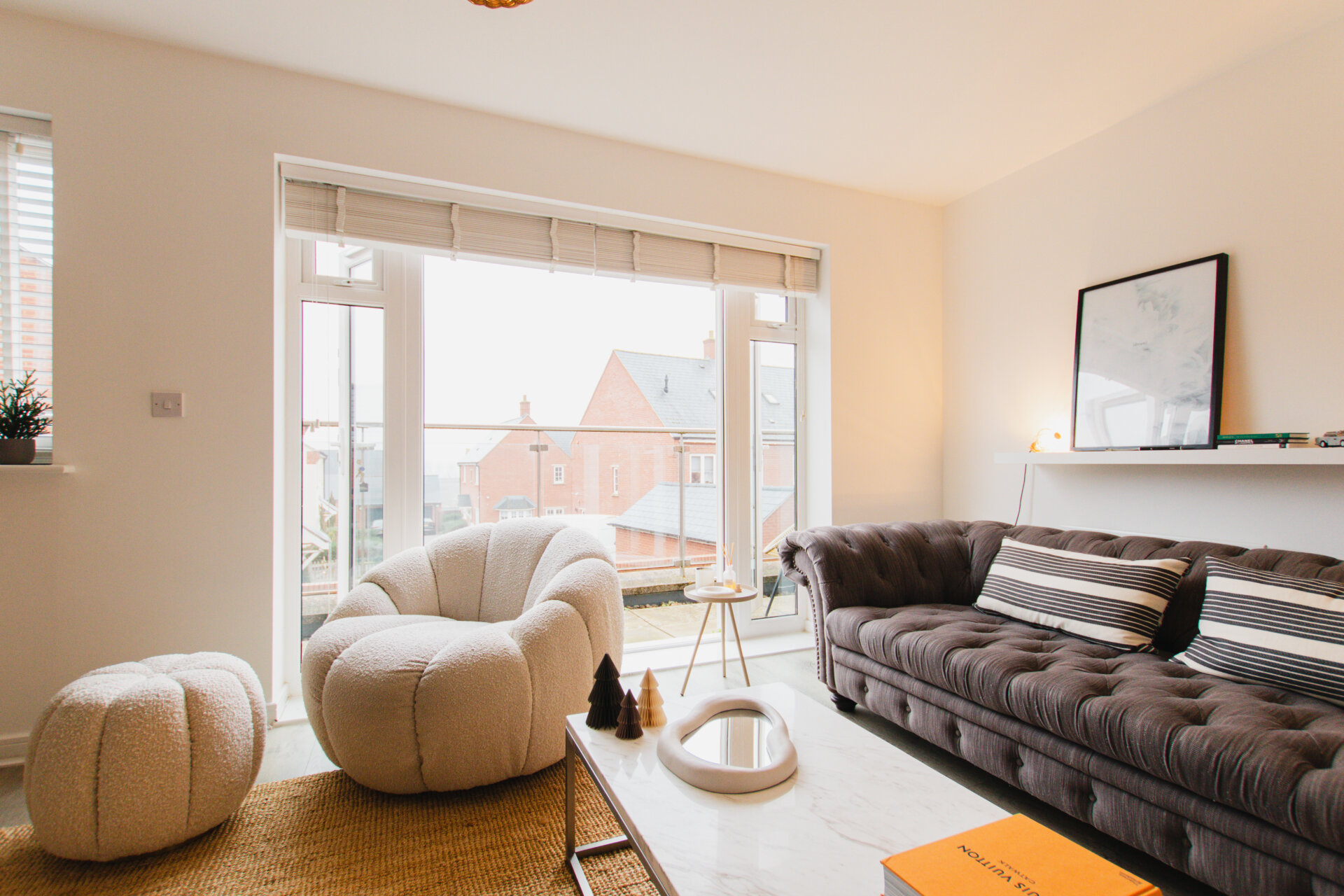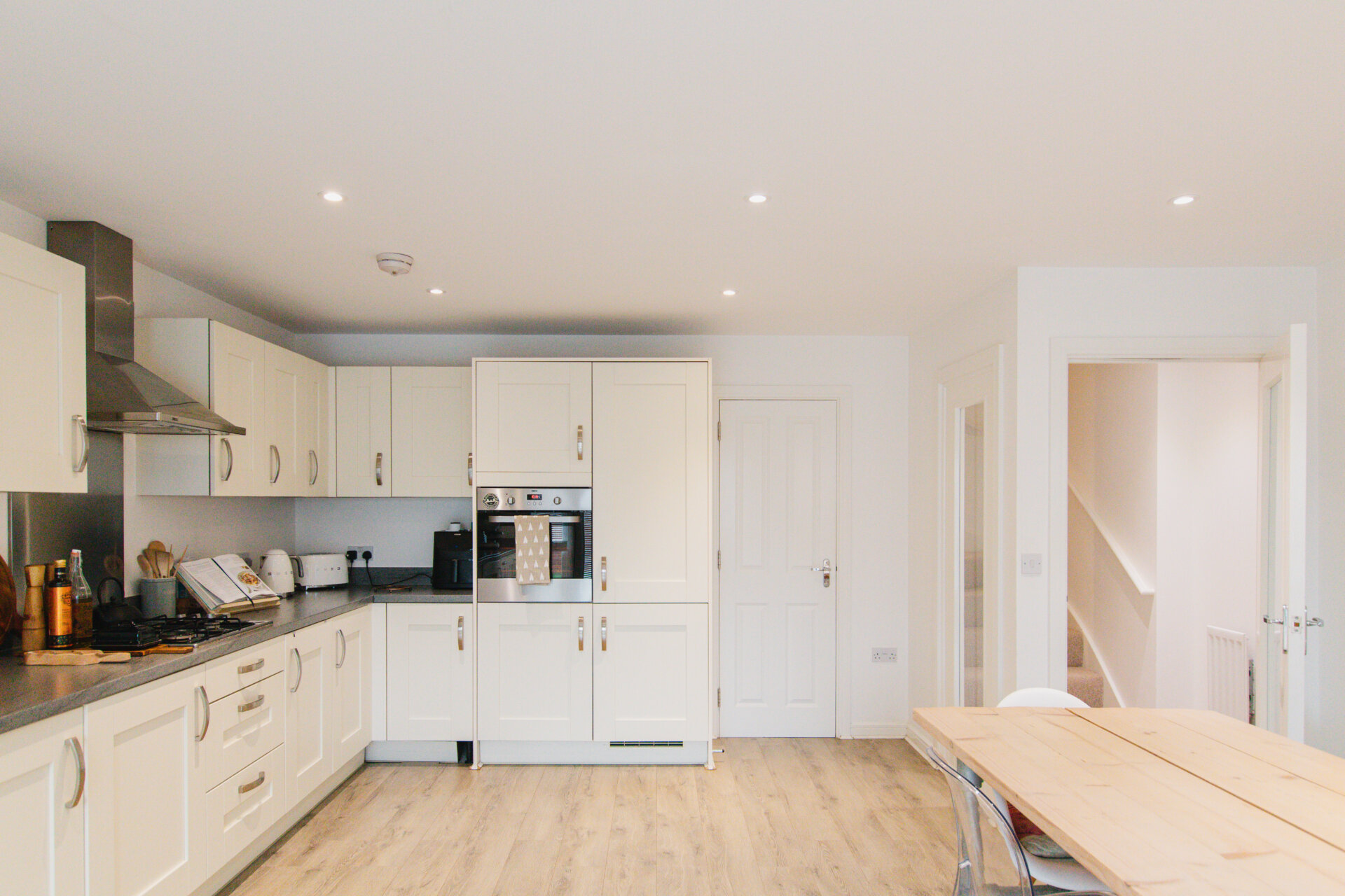 The property was constructed in 2017, having not only 3 years remaining on it’s NHBC warranty, but all of the typical snagging has been done and long forgotten about. The current owner has done a superb job in maintaining the house, and the stylish fresh decor throughout create a homely, and warm environment. the fourth bedroom is found on the middle storey, and is currently used as a home office, with the remaining three bedrooms being on the top floor, along with the family bathroom. The sitting room is on the middle storey, and enjoys elevated views over the garden and beyond, particularly pleasant when enjoyed via the balcony, having space for a bistro table & chairs.