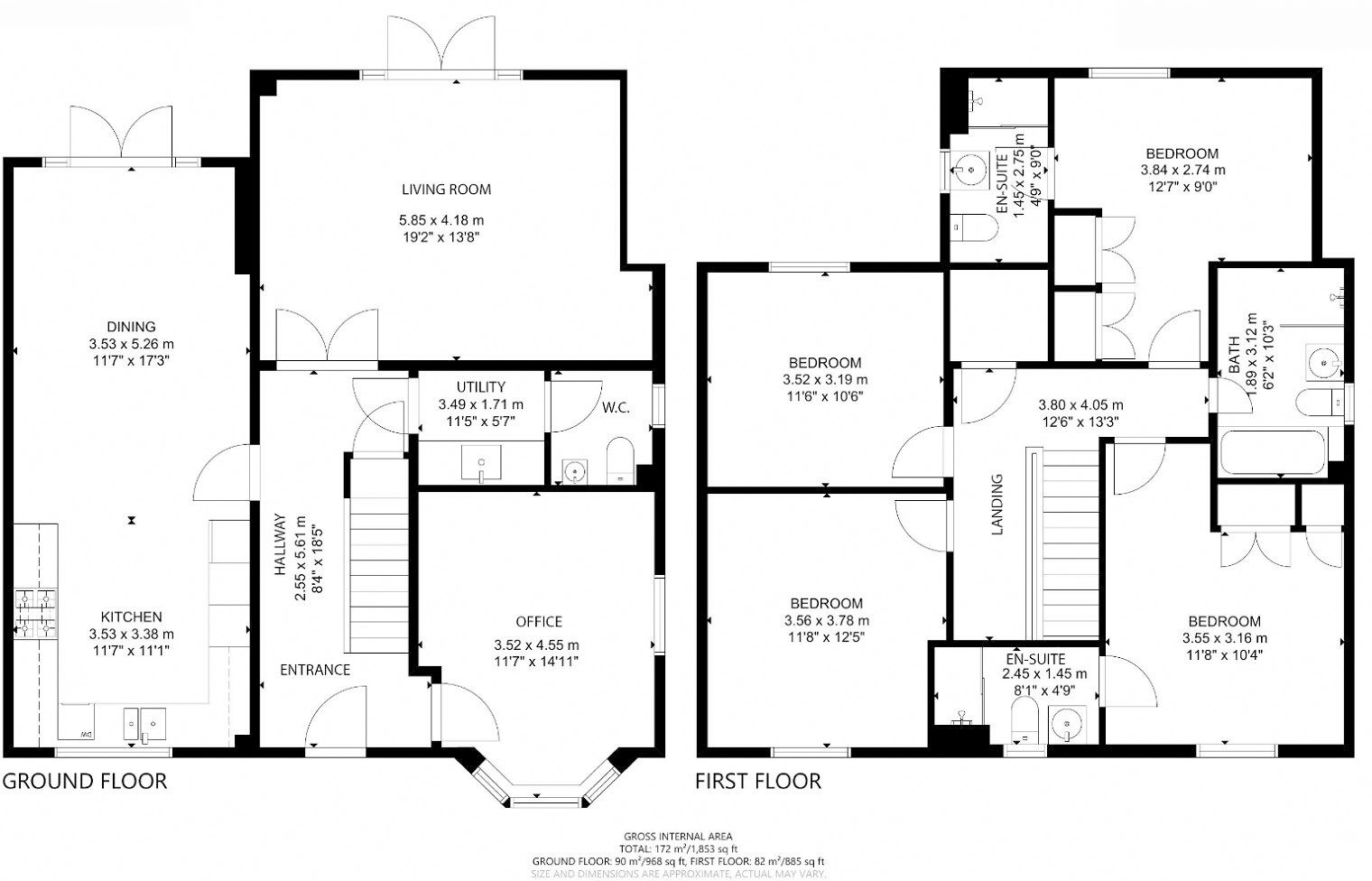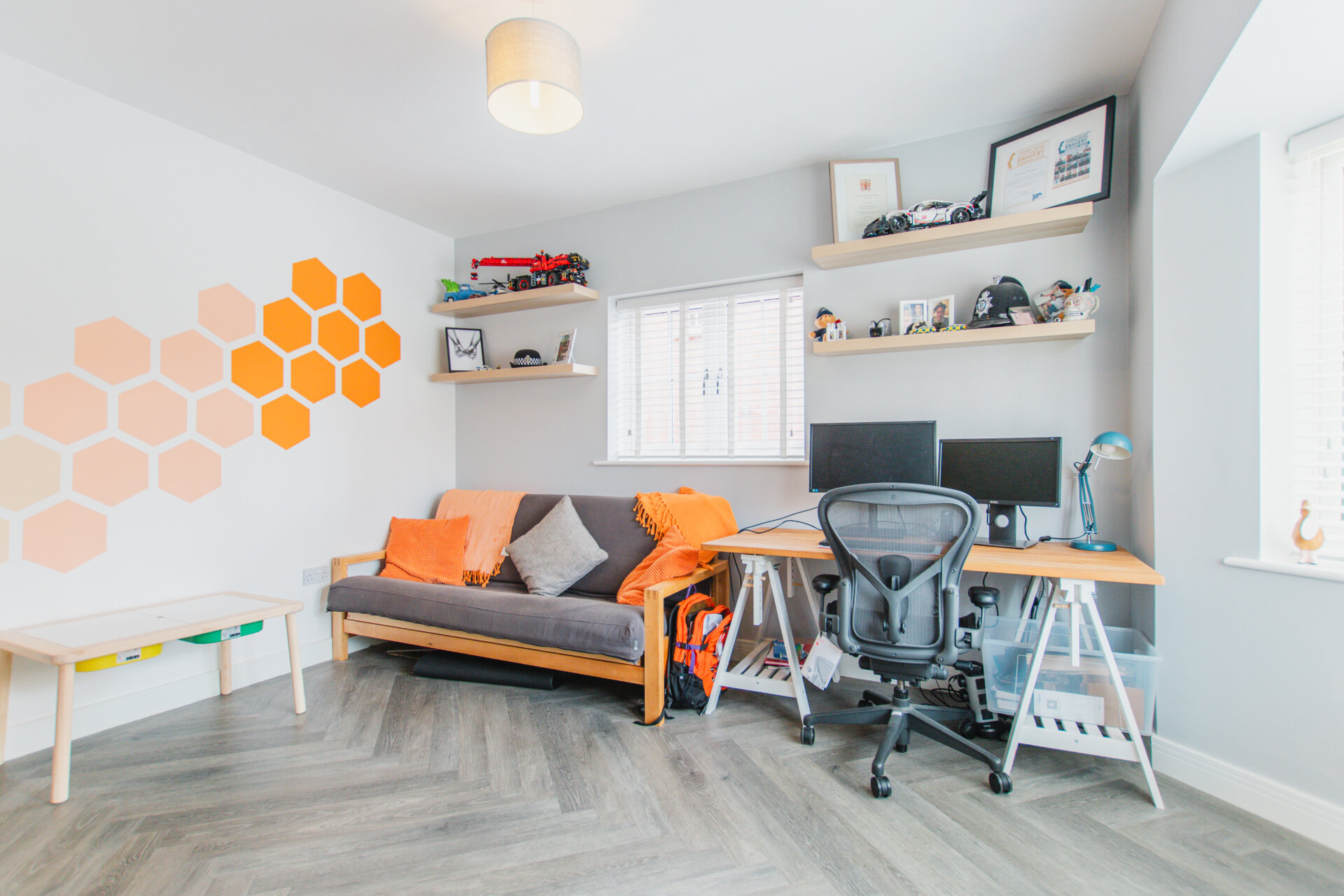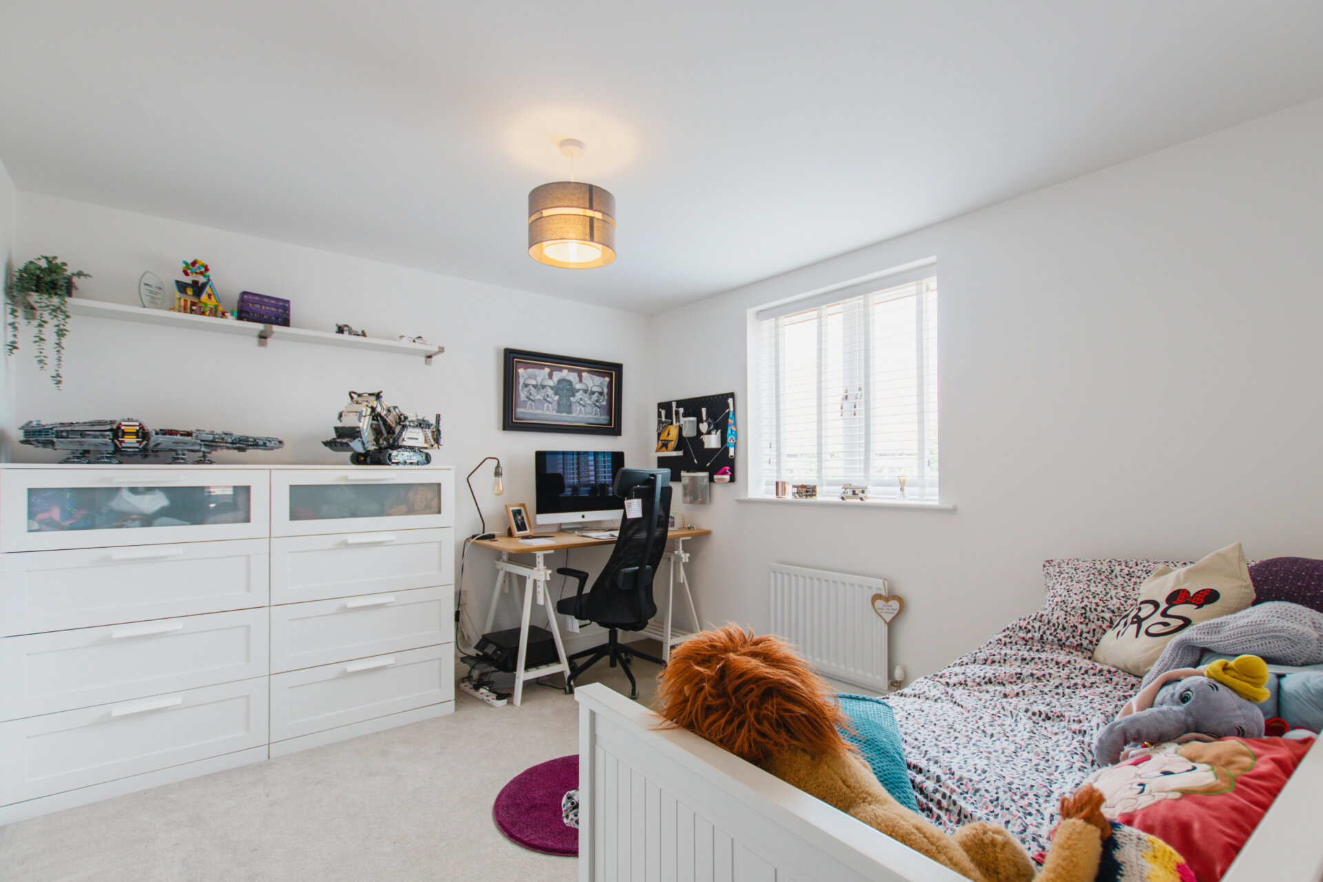 The accommodation comprises of four double bedrooms, perfect for a growing family. The house also features three bathrooms, providing convenience and privacy for all occupants. The large home office is an added bonus, offering a dedicated space for remote working or study.