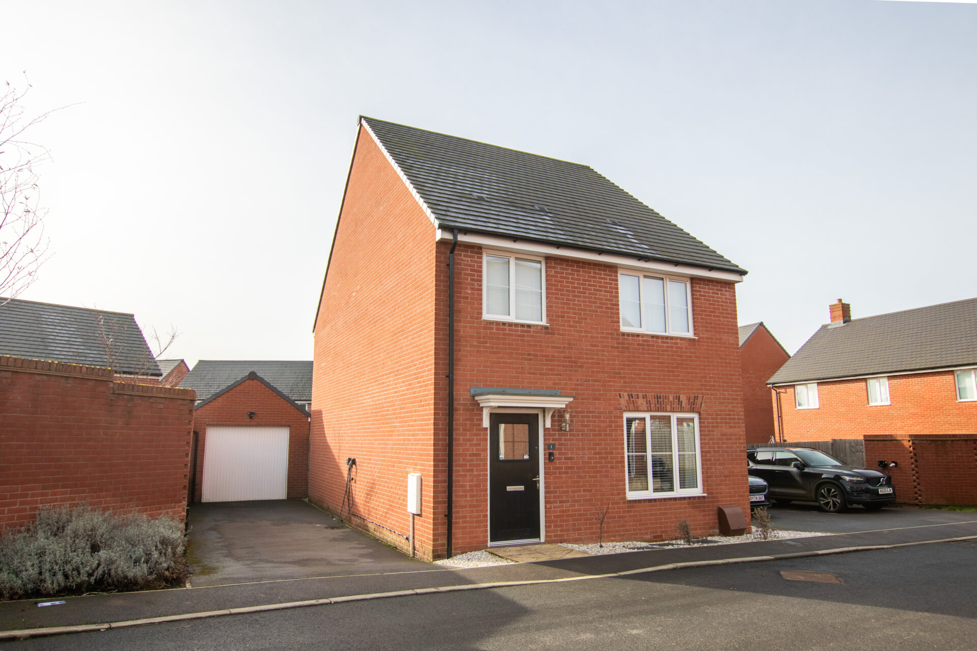 To the front, the property offers two off-road parking spaces, EV charge point and access to the garage