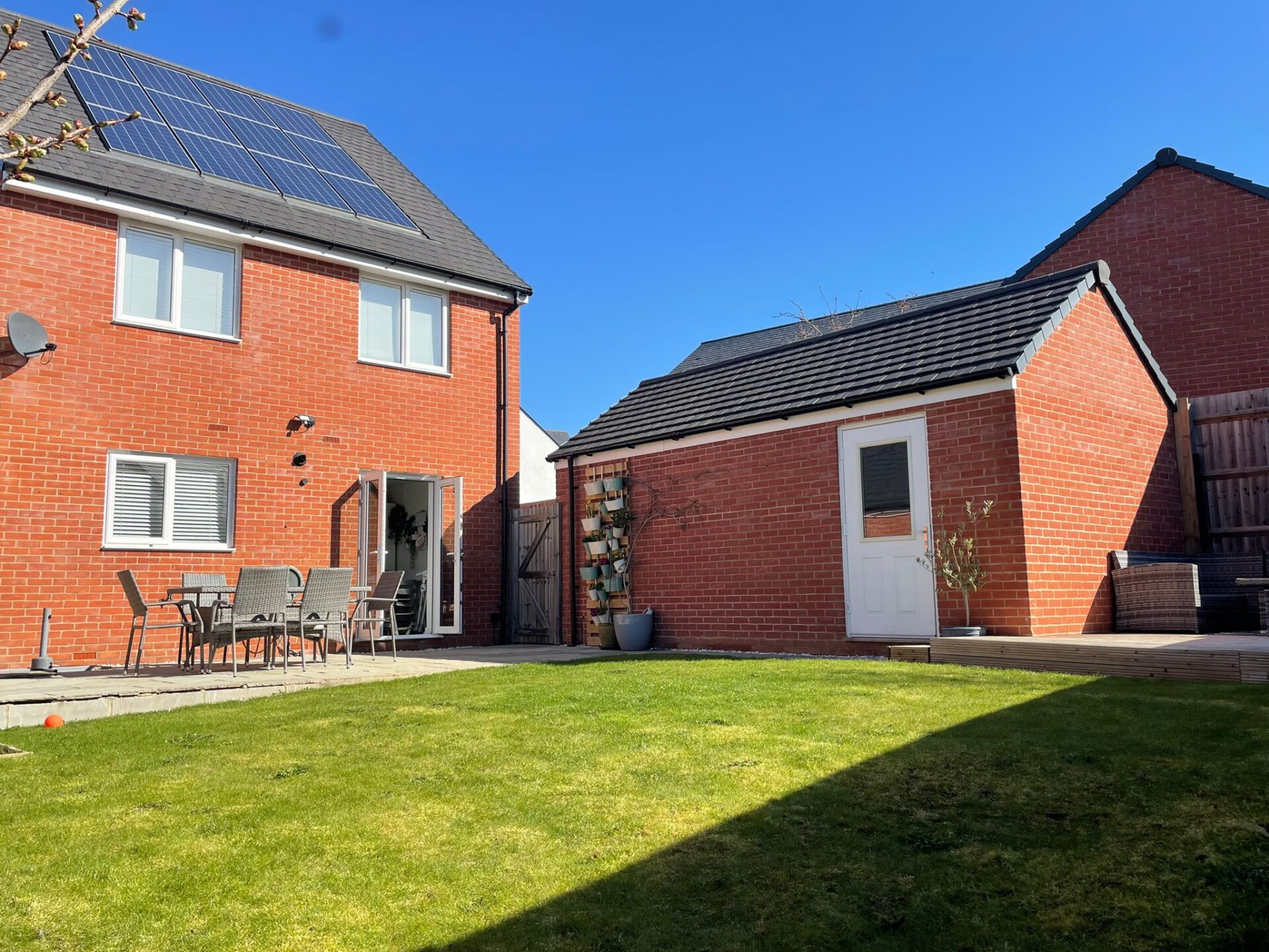 Outside, the south-facing rear garden is mainly laid to lawn with a patio seating area directly outside the property, this is a good size and very family friendly, also having a couple of seating areas. Gated side access leads to the front.