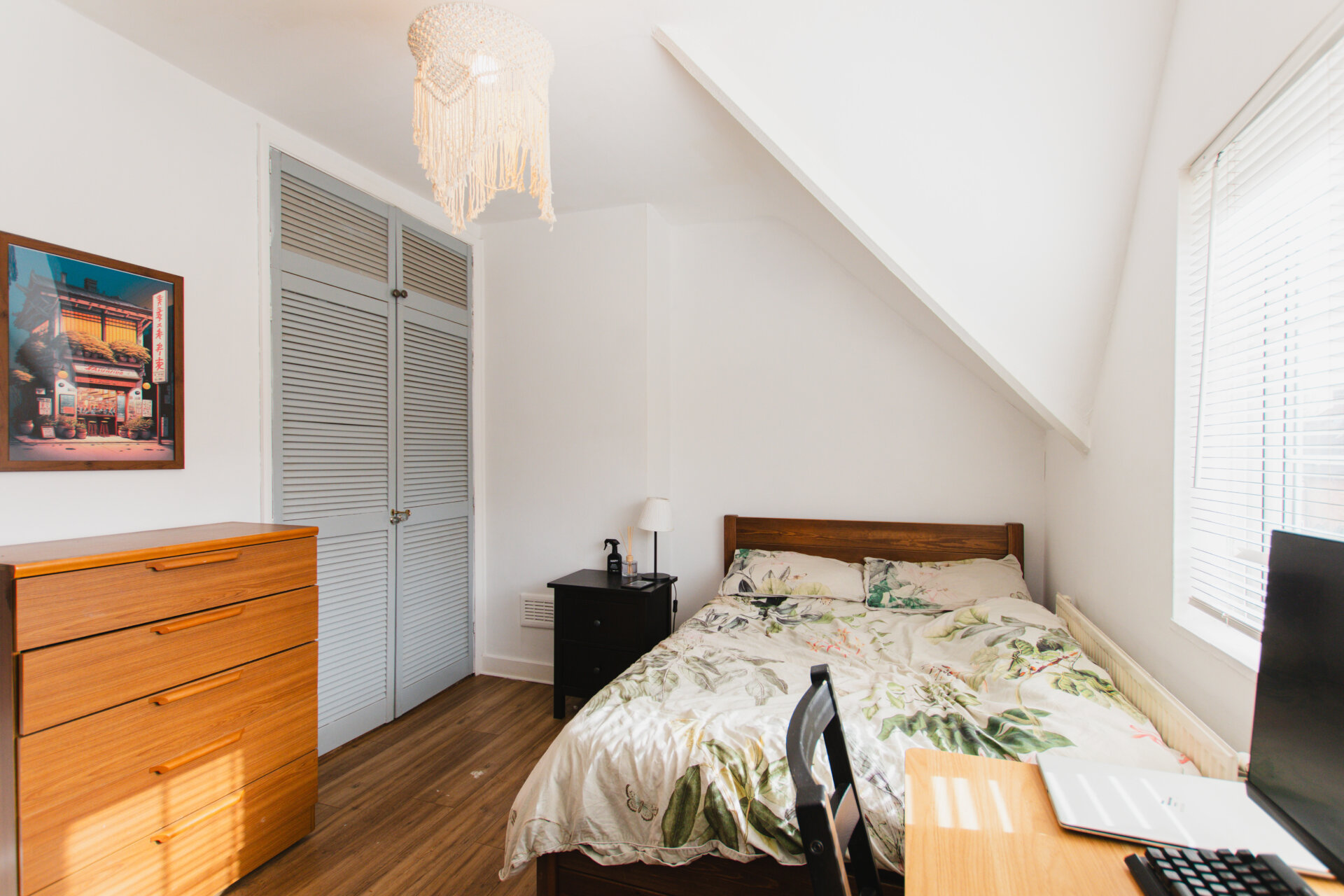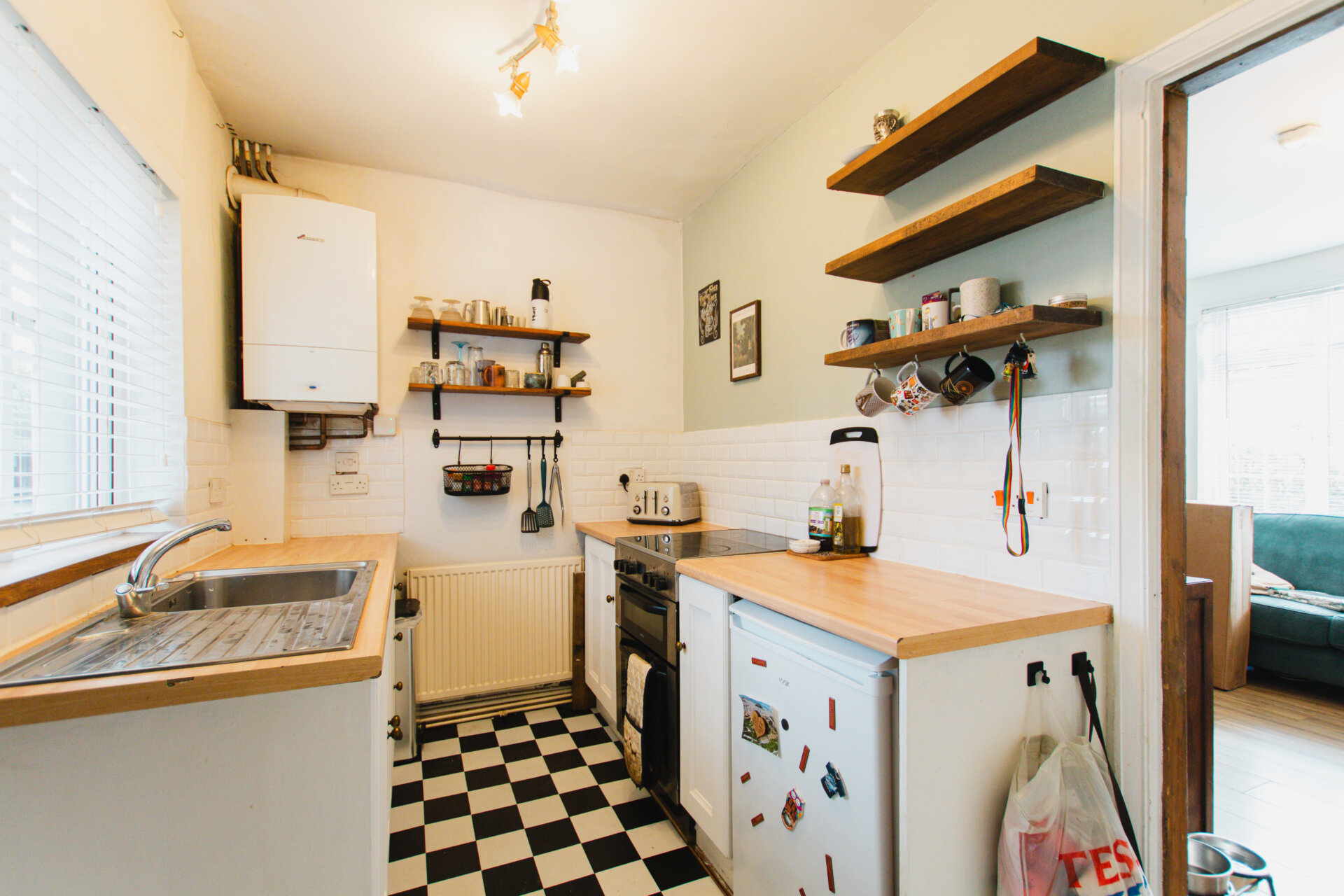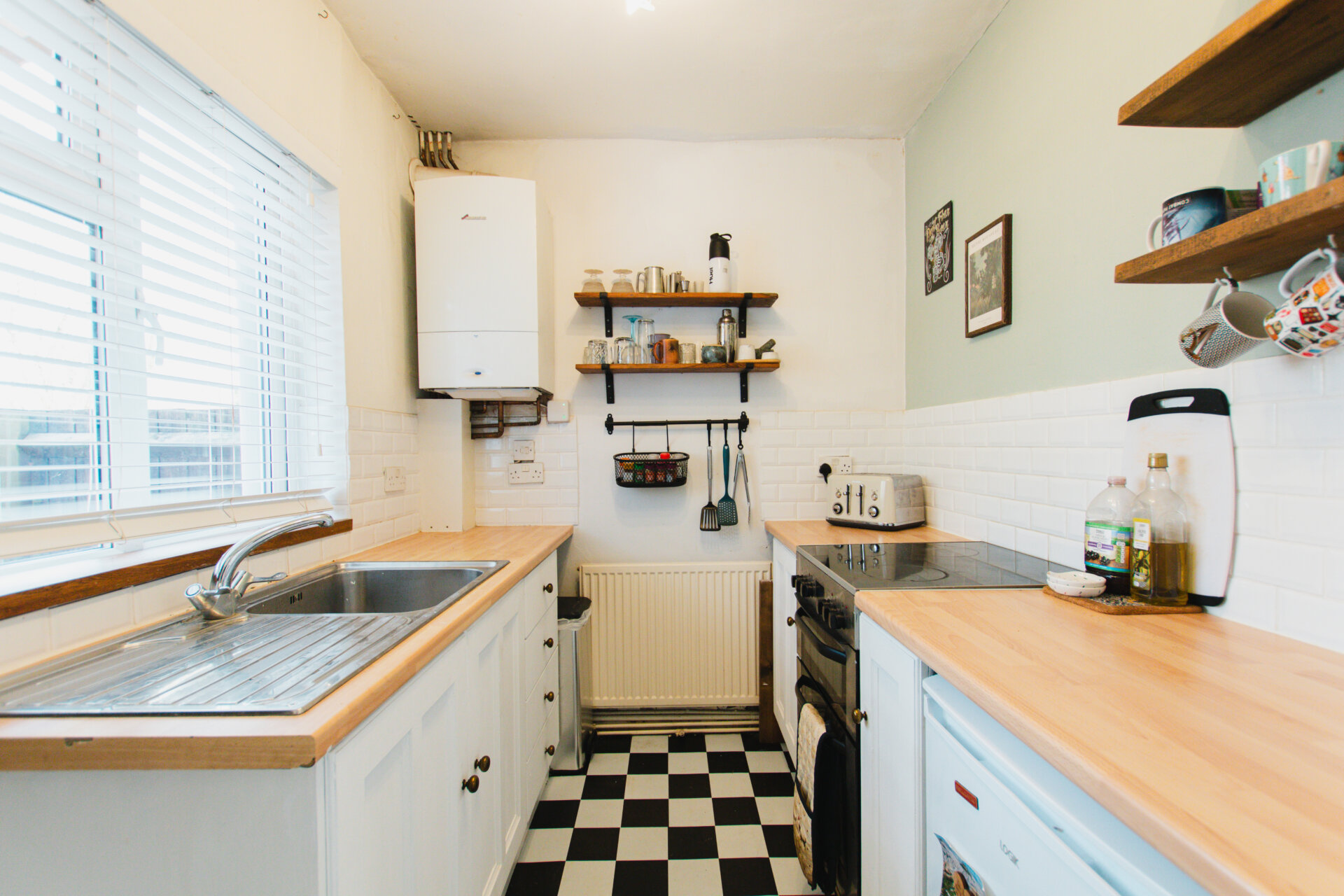 Entering into the front sitting room we find a light and airy room with high ceilings leading through to the separate kitchen and 100 foot garden beyond. Upstairs the master bedroom is a large double with built in wardrobes and the bathroom is lush and spacious with bath and separate shower.