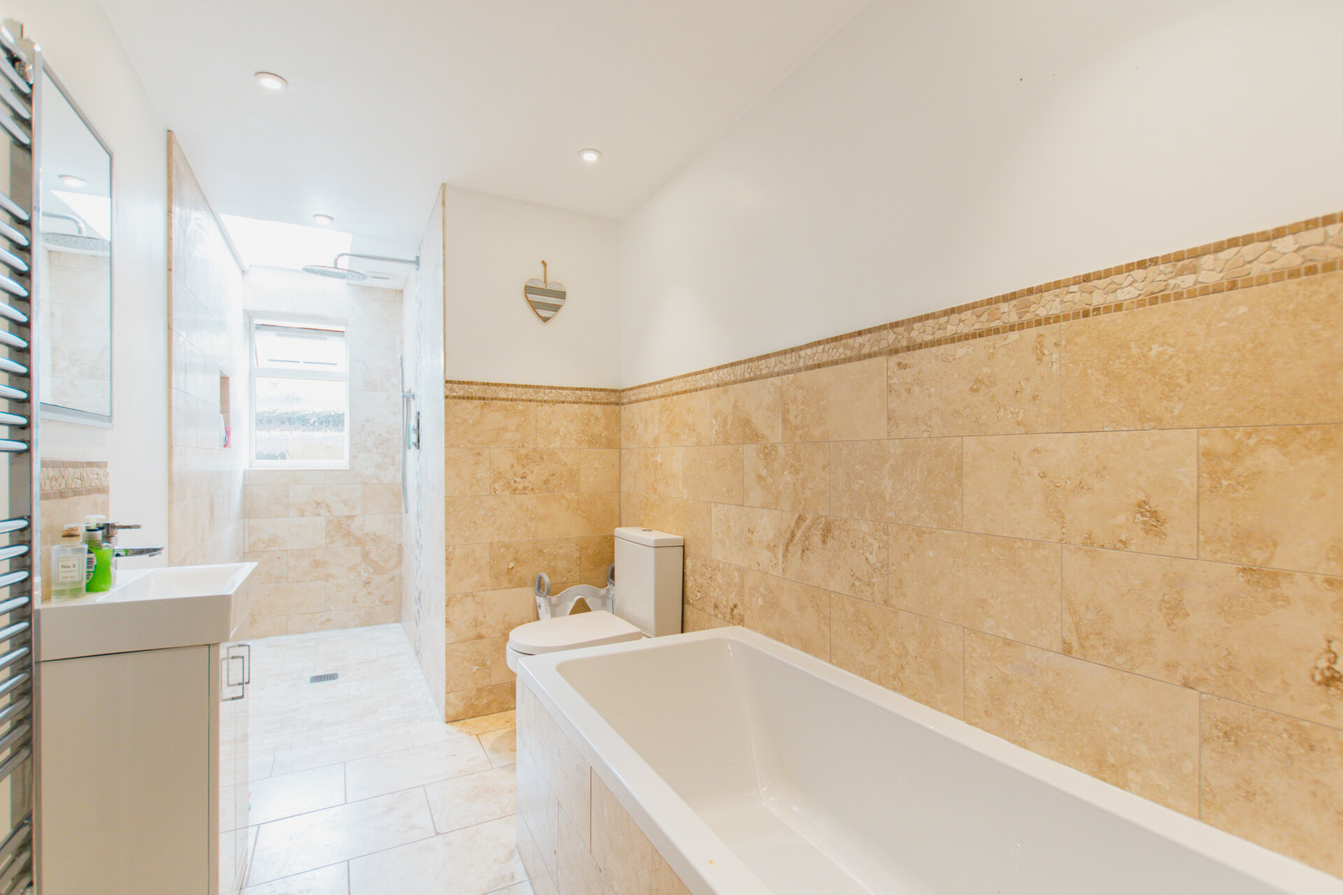An immaculate, ready to move into three bedroomed bungalow, featuring a superb kitchen dining room with tall vaulted ceiling allowing natural light to pour in. The bungalow is also offered with no onward chain, lending itself to a straight forward purchase. The property has been improved substantially throughout, and is a spacious offering for those looking to move to this sought after area. The master bedroom is a great size, having space for a super king bed, and having wall to wall built-in wardrobes, that lead to the ensuite shower room, and tucked away utility room. The family bathroom is a showstopper too, having neutral tile throughout, walk-in rainfall style shower, and separate bathtub. The sitting room is a cosy space with large log burning stove, and leads onto the heart of the home being the open plan kitchen dining room that has bi-folding doors opening onto a good sized garden enjoying a good degree of privacy. Within the garden is a large timber shed, ideal to convert to home office and light and power are connected.