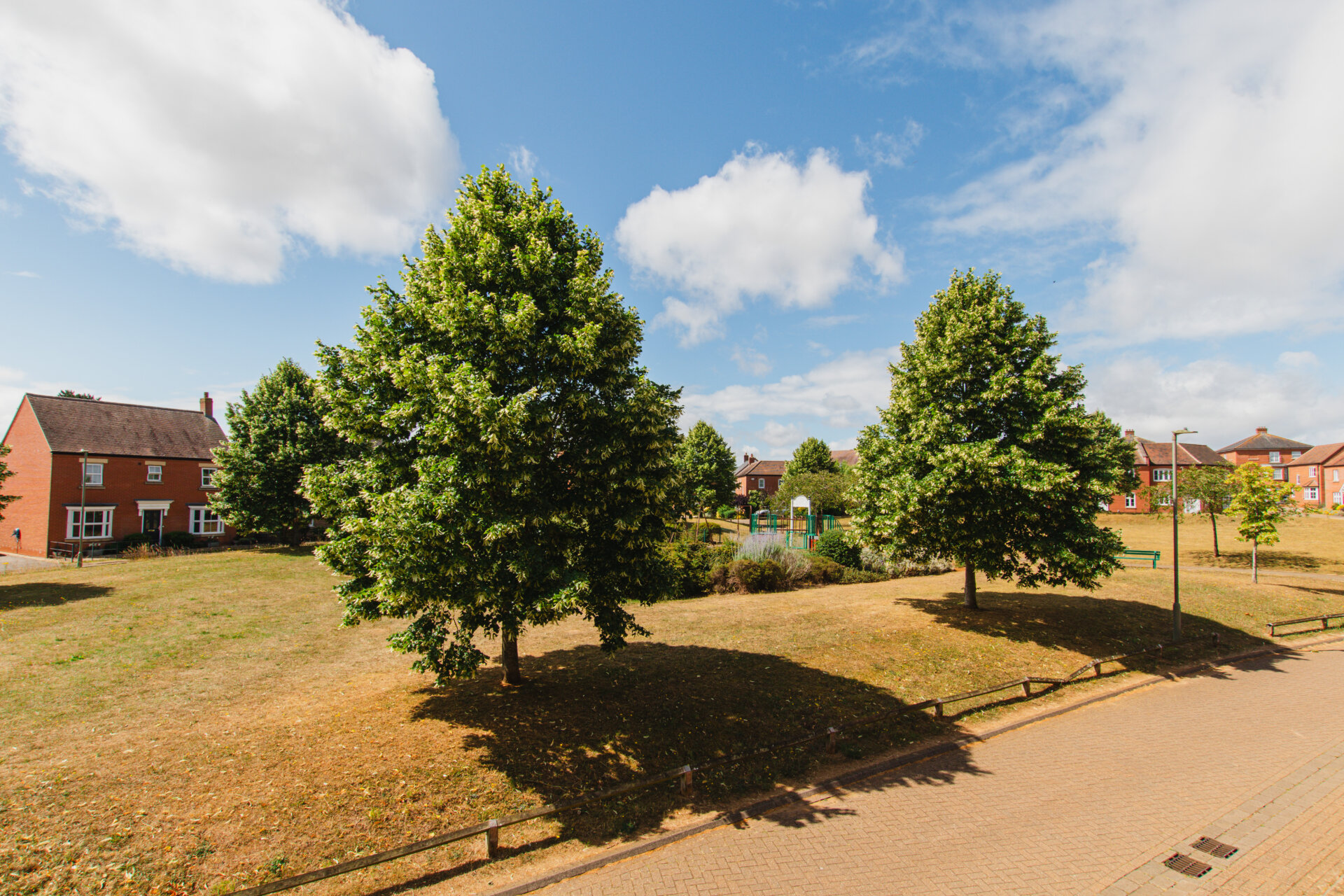 This is a true family-friendly community, located on a quiet residential road where homes are rarely available. A well-maintained green with a children’s play area sits directly opposite, adding a sense of openness and space. Local amenities include a wide range of schools, nurseries, parks, and green spaces—all within easy reach.