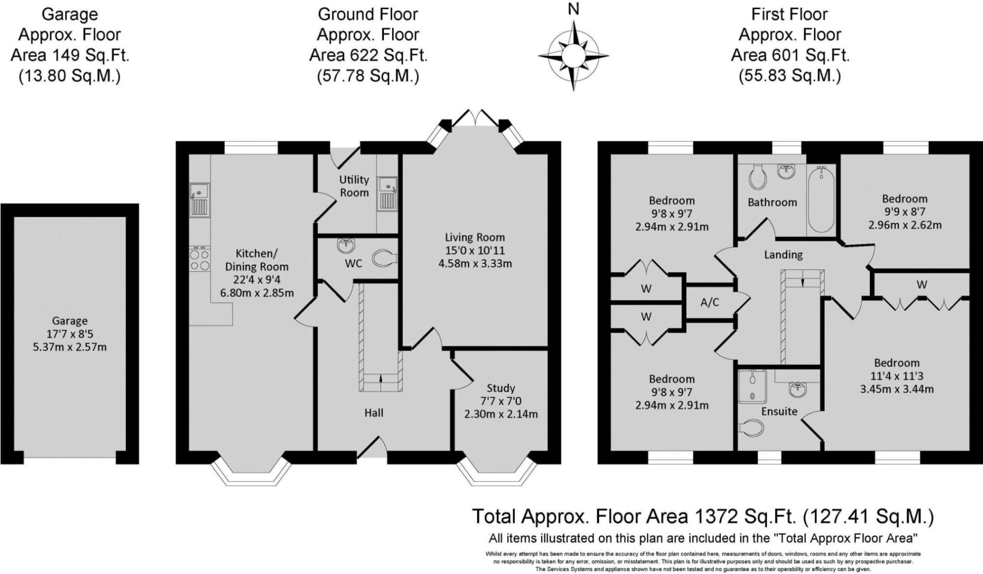 Designed with families in mind, the property features four well-proportioned double bedrooms, including a principal suite with an en suite shower room, and a generous family bathroom. Three of the bedrooms benefit from built-in wardrobes, offering excellent storage.