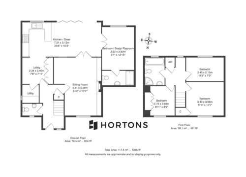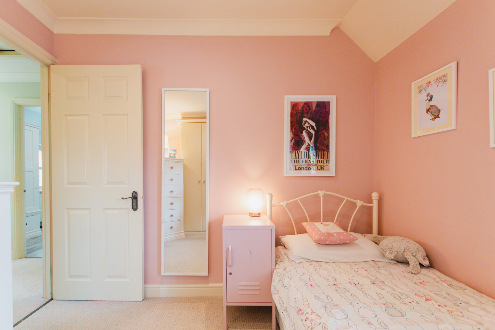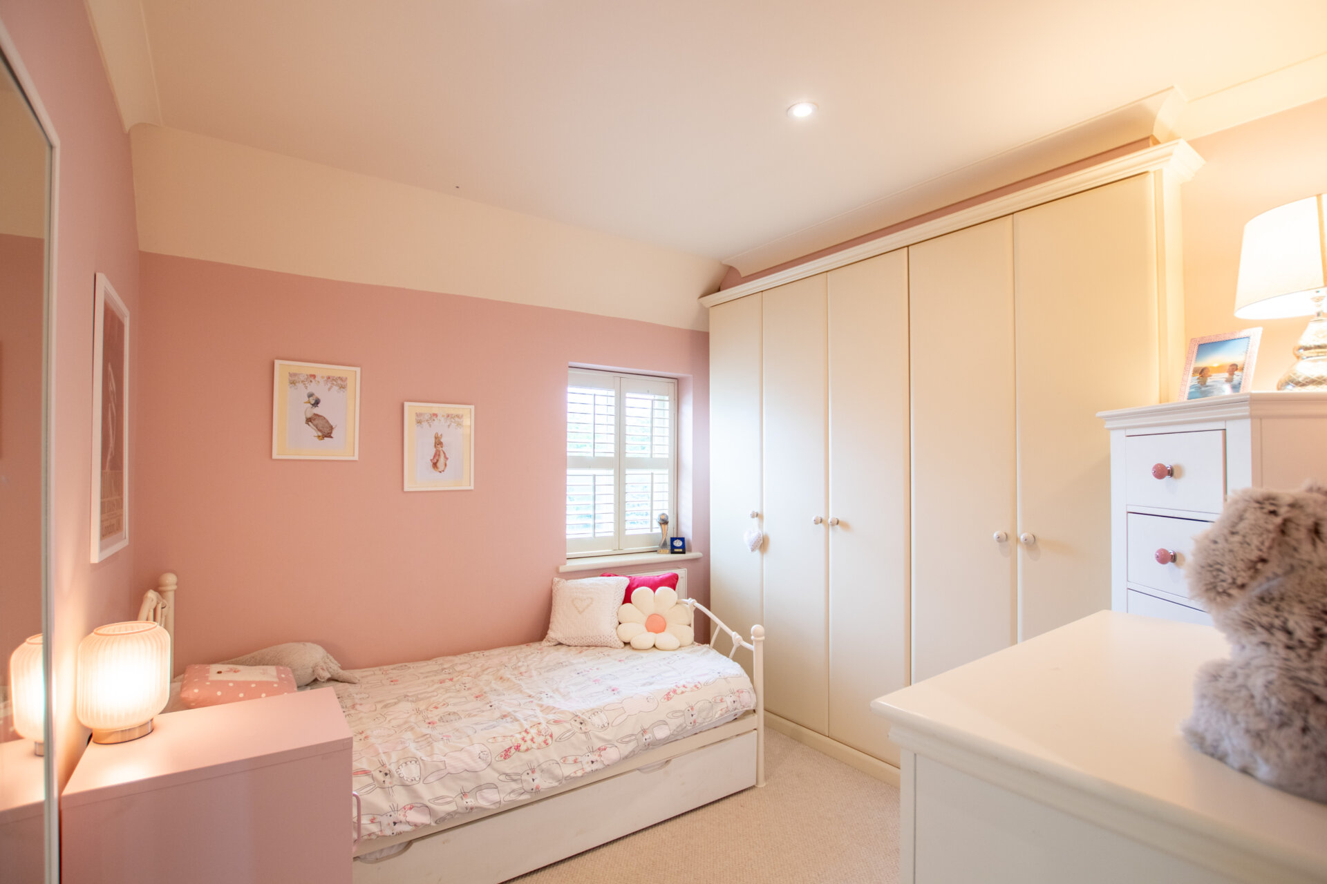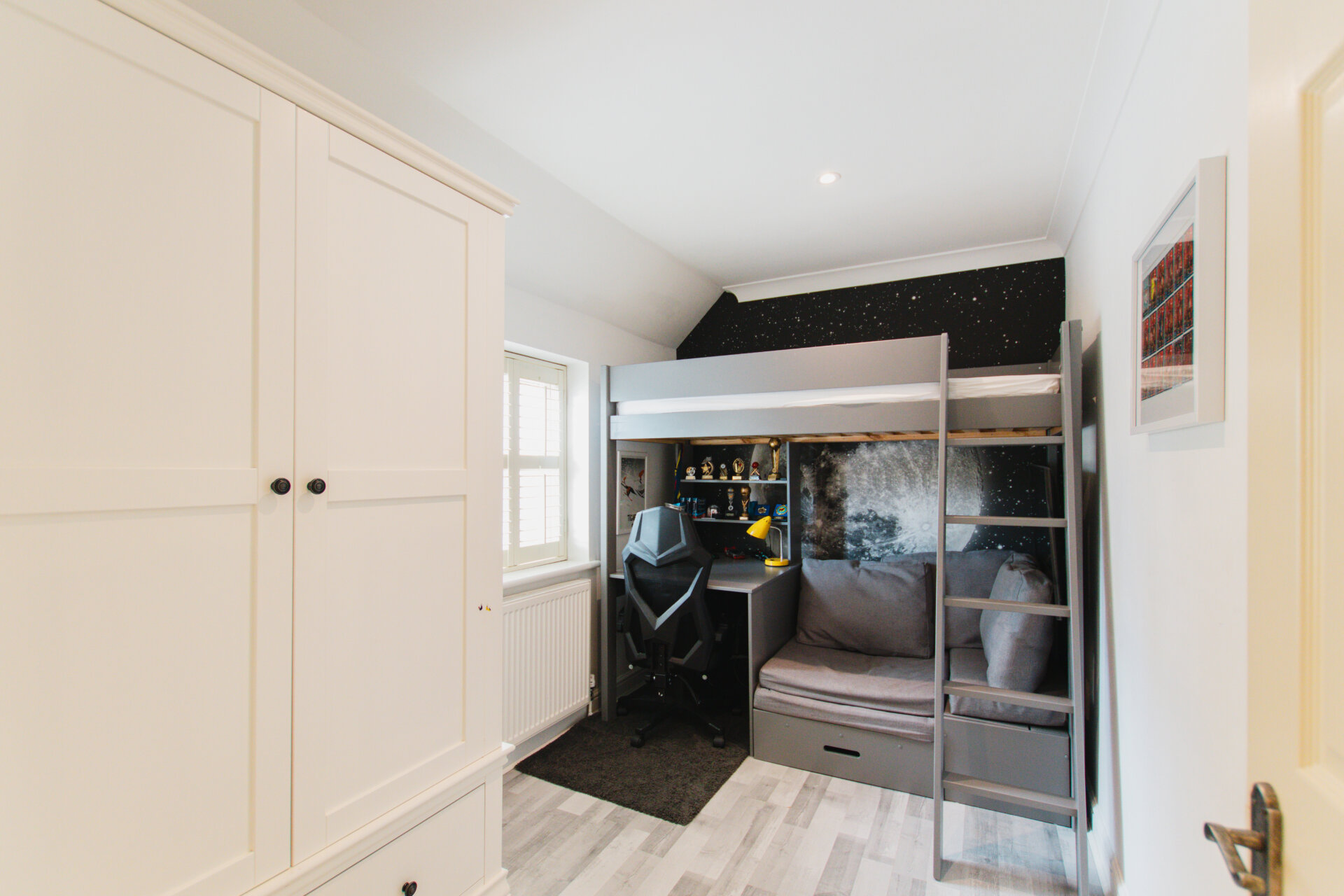 A large separate sitting room with a charming log-burning fireplace offers a cosy contrast to the open-plan space, while a well-equipped utility room adds practicality. One of the standout features is the addition of a spacious double bedroom with an en-suite shower room on the ground floor—ideal for guests, older family members, or even as a dedicated home office.