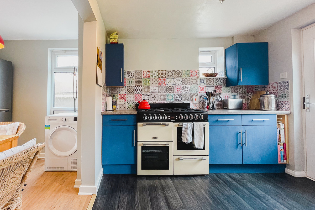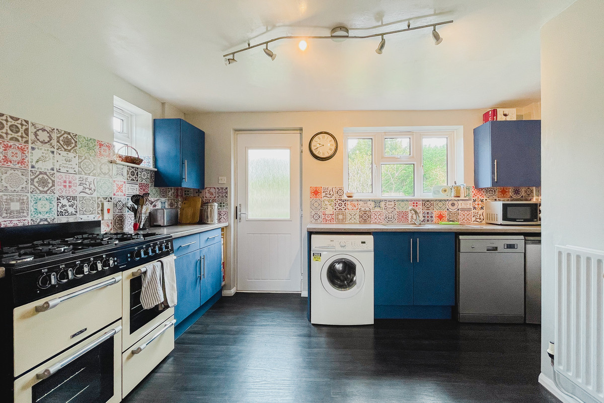 The sitting room spans the length of the house and is dual aspect, being a very light and airy room, having patio doors opening onto the rear garden. The kitchen is a good size, and well presented, having an opening to the dining area. There is a newly installed range style cooker, door to rear garden, and space for dining table & chairs.