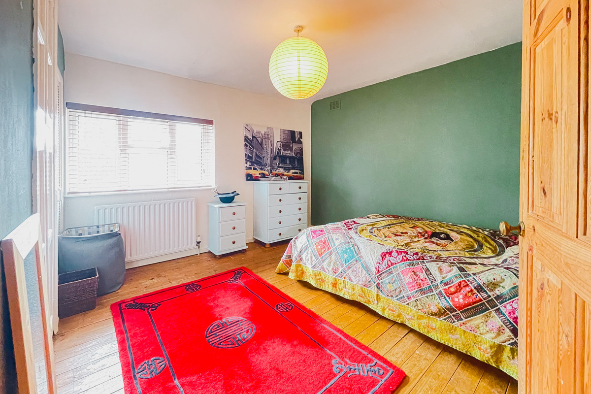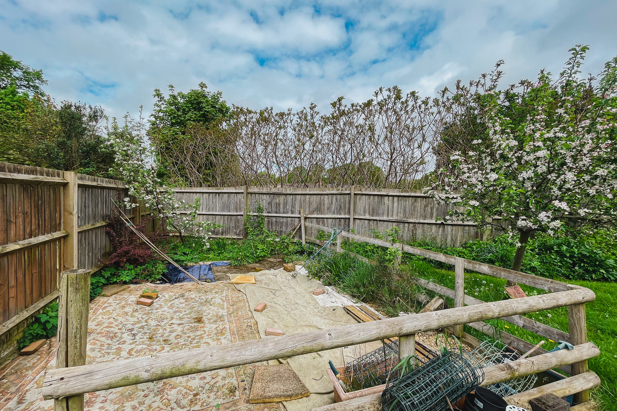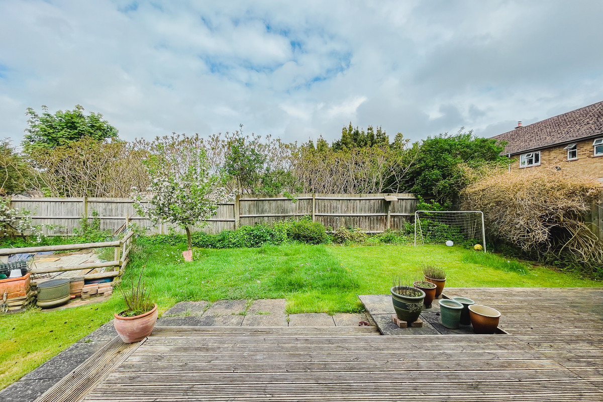 The house is on a corner plot, looking over a treed green. The garden is a good size and enjoys a good degree of privacy. There is scope to extend STPP as neighbouring houses have done so. The garden has storage space, decked area, laid lawn, a variety of hedging and plants, and a well maintained and ready for the season vegetable patch.