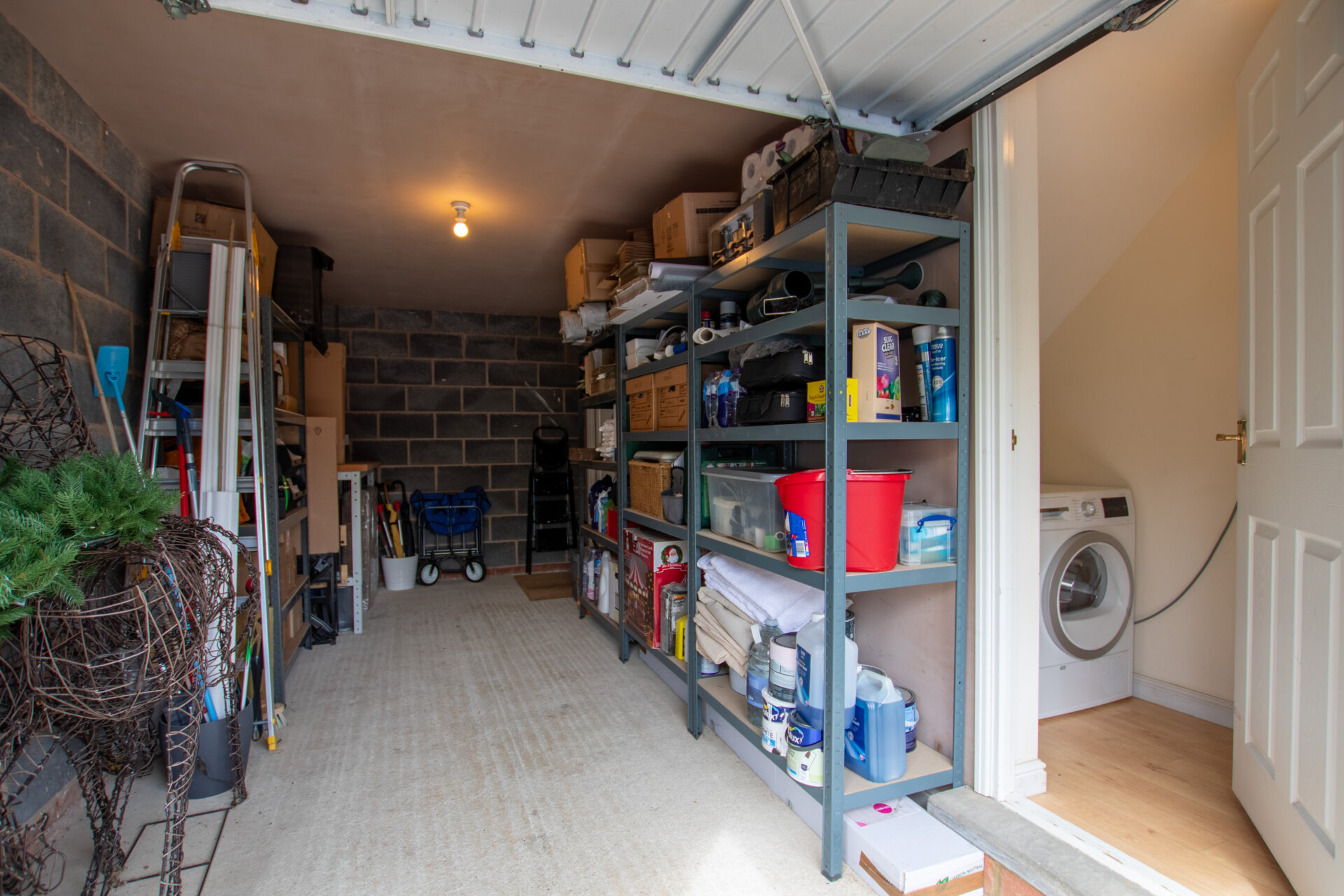 The garage itself is a genuine extension of the home. With power, internal access from the entrance hallway, and a dedicated utility cupboard (currently housing a tumble dryer and freezer), it adds a layer of flexibility that’s increasingly hard to find.