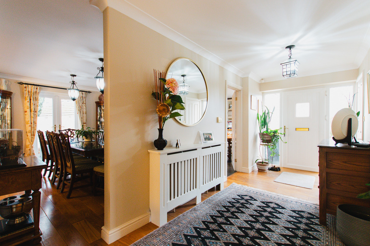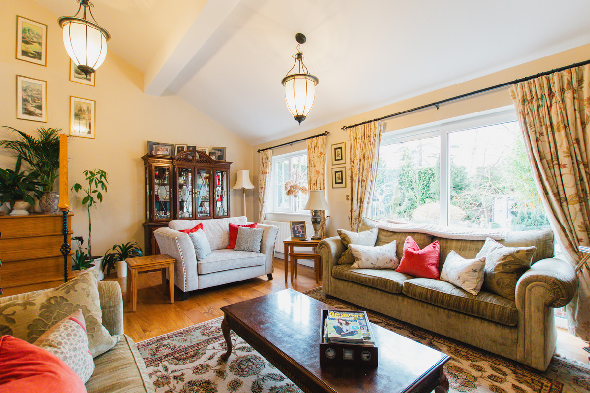 Coming to the market for the first time in almost 30 years, Hollowfield is a superb family home, sitting in approx. 1/4 acre with private & secluded gardens. The house is presented to a very high standard, and offers versatile accommodation over one and a half storeys; as seen in the floorplan and photos the large sitting room is recessed following the lay of the land, with staircase down into the space.