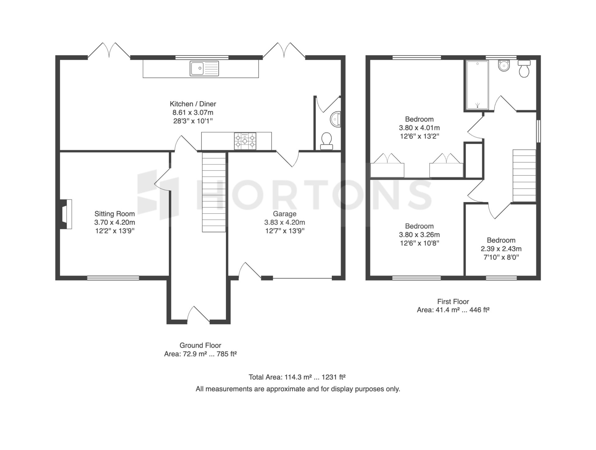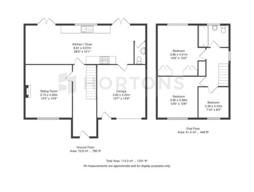 A very well presented, extended three bedroomed property that is modern & spacious, benefitting from a large garden, larger than average garage, and two vehicle driveway. The house style is very popular, and attracts a variety of markets from those looking to get onto the property ladder, to those looking to downsize. The house has been extended at the front, side and rear, and offers a modern space for families to enjoy. Upon entry you are immediately welcomed into the large entrance hallway, and then a cosy, yet light and airy sitting room that has a brilliant log burning stove as it’s focal point. The kitchen dining room is open plan, and spans the width of the rear of the house opening onto a large & private rear garden. This extension and reconfiguration was carried out circa 6 years ago, including the installation of a new boiler, and creation of a downstairs cloakroom. The garage is 1.5 times the size of a single, and has light and power connected, and both an ‘up and over’ door, and personnel door. Two of the three bedrooms are double bedrooms with the third being a single, and the family shower room is also located on the first floor - this has also been updated in recent years.