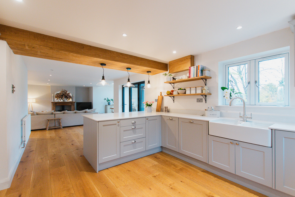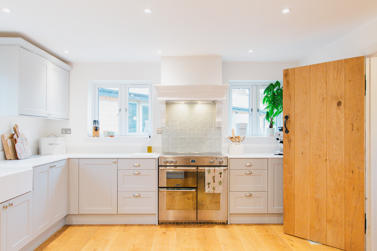 The kitchen is an attractive shaker style kitchen, with bespoke design and layout, with practical use at the forefront of the design. There is a Stoves range cooker with induction hob, Belfast style sink, integral dishwasher, bin storage, fridge freezer, larder style cupboards, breakfast bar and ample storage units.