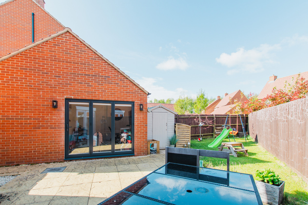 "Great size for a family of four, with a part-converted garage office/space to sleep guests. Lovely neighbours/neighbourhood with everyone in a WhatsApp group, planning park BBQs in the summer, sharing/lending/borrowing stuff, etc. A lot of young families with children between 2-6. South facing garden, with the sun in the house and on the garden from AM to sunset. Office space has bifold doors and is great in the summer for a bit of shade."