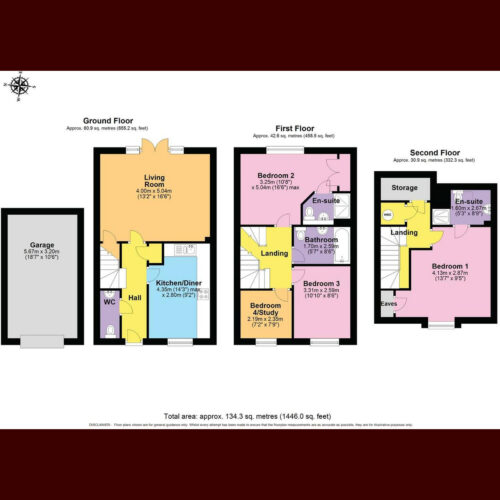 The accommodation comprises of an entrance hallway, cloakroom, kitchen dining room, sitting room, three bedrooms on the first floor, with bedroom two having ensuite shower room, family bathroom, top floor master suite with ensuite shower room, landscaped rear garden, garage, and parking. The parking is especially good as it is hidden from the road, and tucked behind the property.