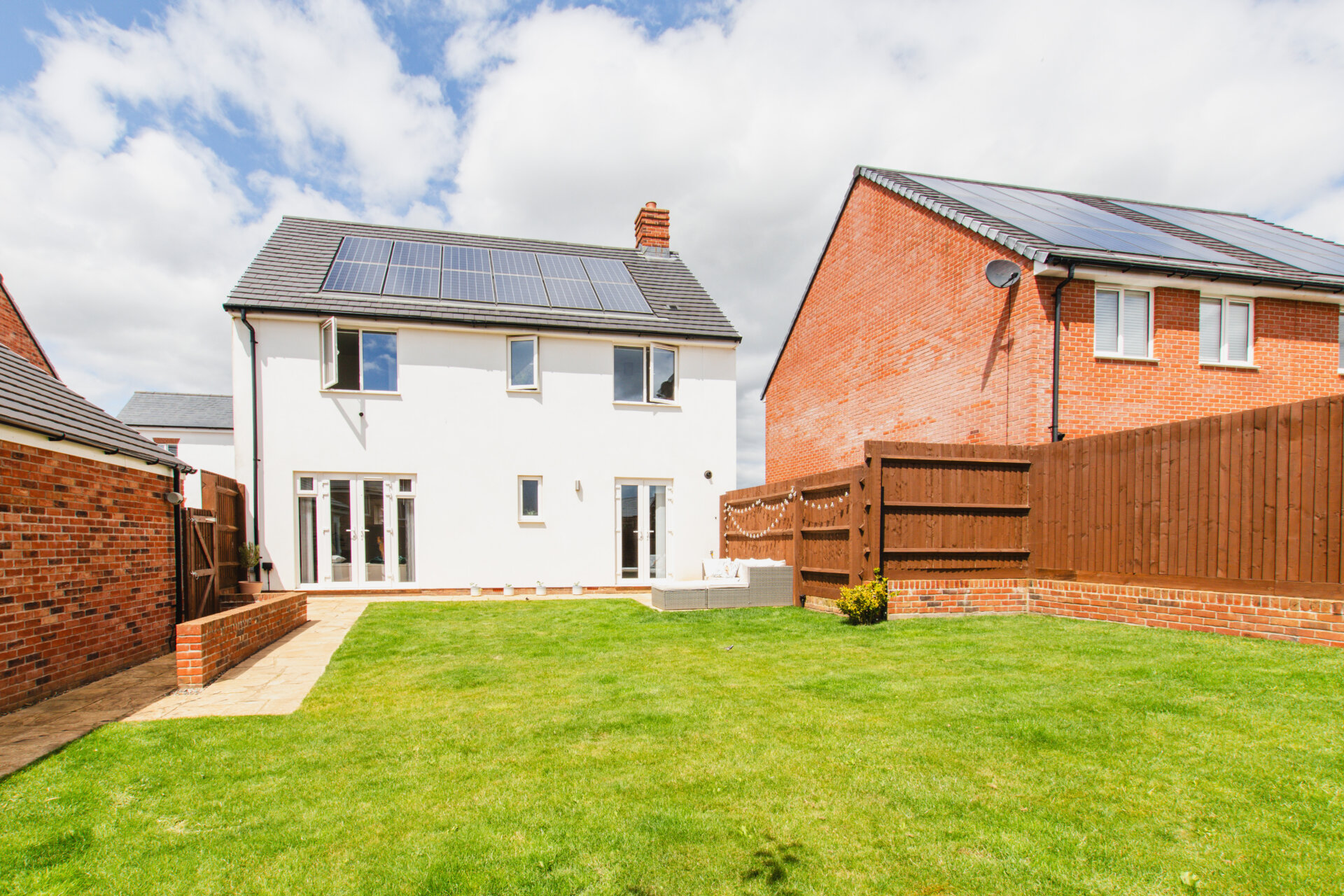 Offered to the market is this exceptional four bedroomed detached family home, that is wonderfully light and airy throughout, classically styled to make the most of the natural light throughout the home. The property comes with one of the best gardens on the development being sun-filled, a very good size, and enjoying a superb degree of privacy. Benefitting from a ground floor home office, no bedrooms are sacrificed to accommodate working from home, a real feature in today’s working life, and the office has views over the open green to the front of the house. The house was constructed in 2020, having 6 years remaining on its NHBC warranty. As seen in the photos the house has been looked after incredibly well, and has a show-home feel to the space. The open plan kitchen dining room is a beautiful space, being dual aspect and letting that natural light pour through, especially from the patio doors that open onto the South facing garden. Adjacent to this room is a spacious ground floor cloak/ utility room, a very practical addition to the property. The sitting room is a comfortable size and has double doors opening onto the garden patio. Bedrooms one, two & three all benefit from built in wardrobes and even bedroom four is a good size; the house overall is very well proportioned. The garden is a beautiful space, having luscious lawn, planted beds, extended patio area, gate to driveway and door to the garage. The garage is a good sized single garage with light and power connected and sits behind a two vehicle driveway. There are also solar panels fitted on the South facing roof aspect, contributing to massive savings to be made on the electricity bills.