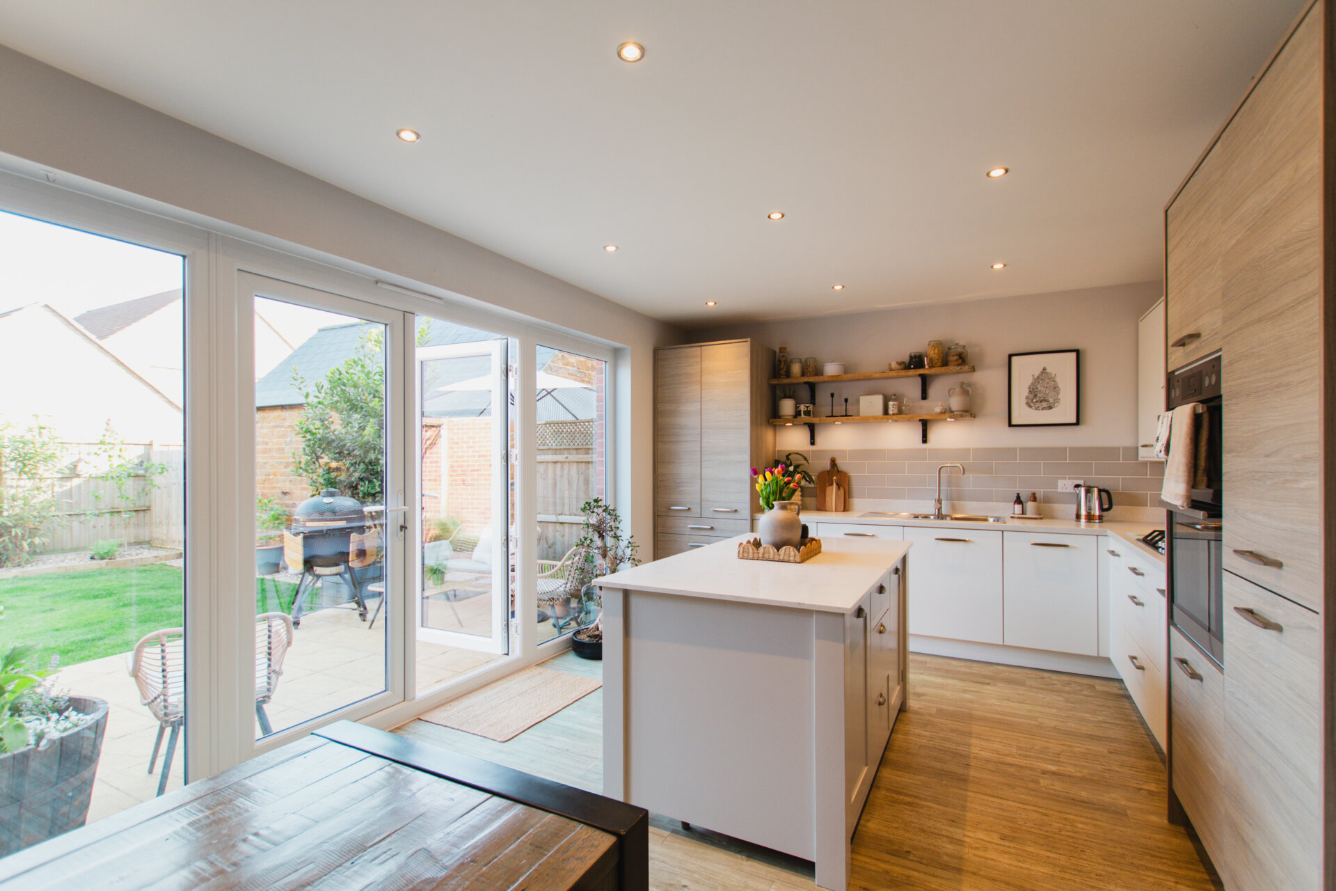 The accommodation is well-balanced and ideal for modern family life, featuring a generous sitting room and a spacious open-plan kitchen/dining area that opens directly onto the rear garden — perfect for entertaining or relaxing with family. Upstairs, all three bedrooms are well proportioned, with the master bedroom benefiting from a sleek en-suite shower room.