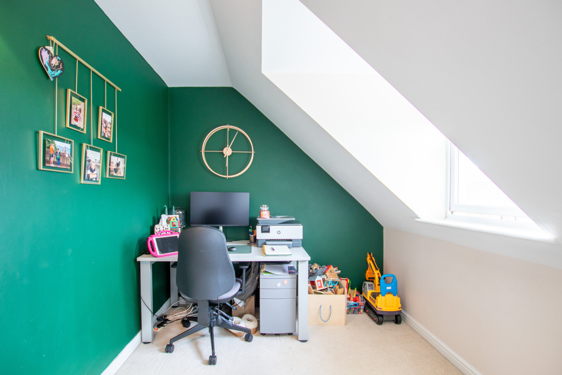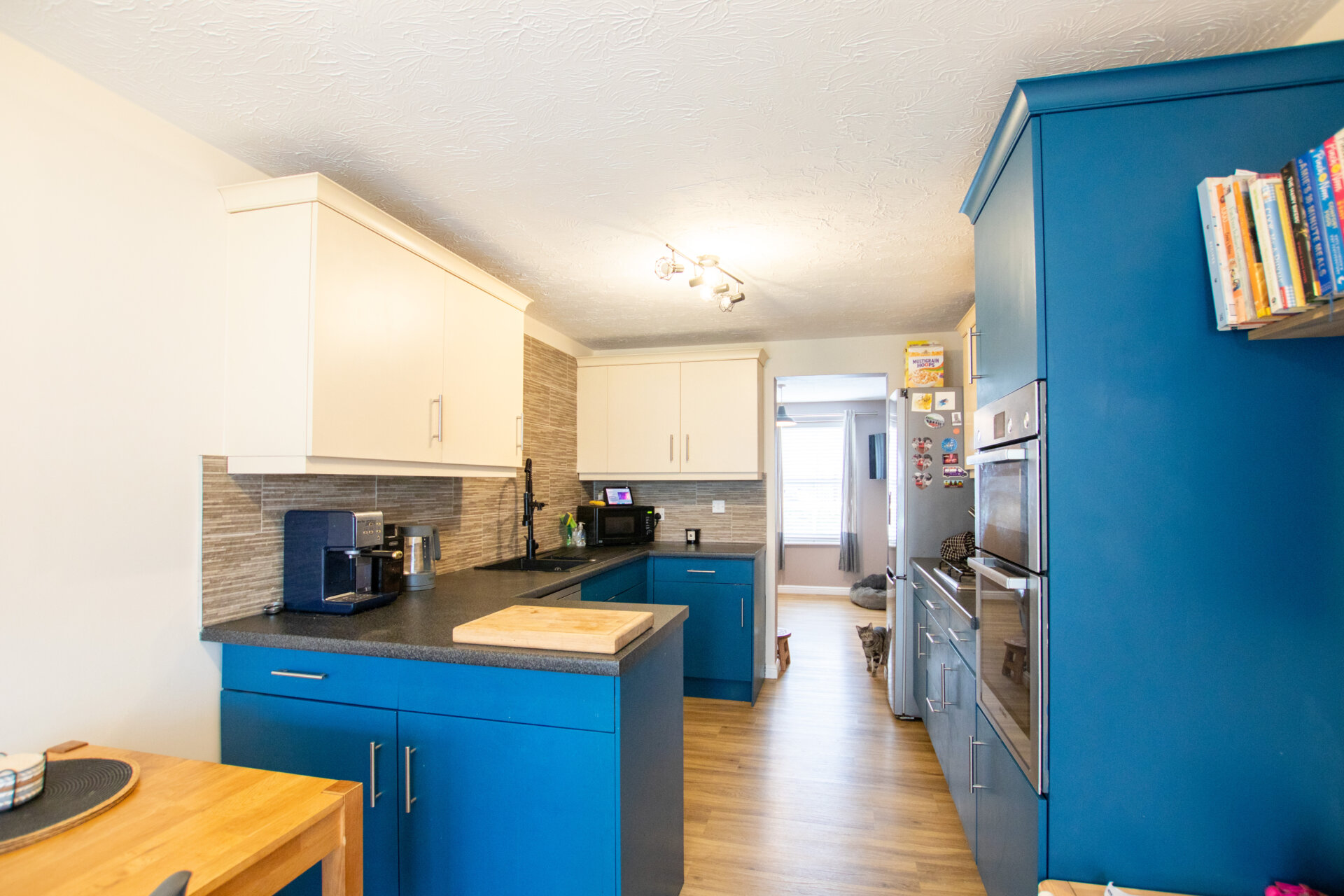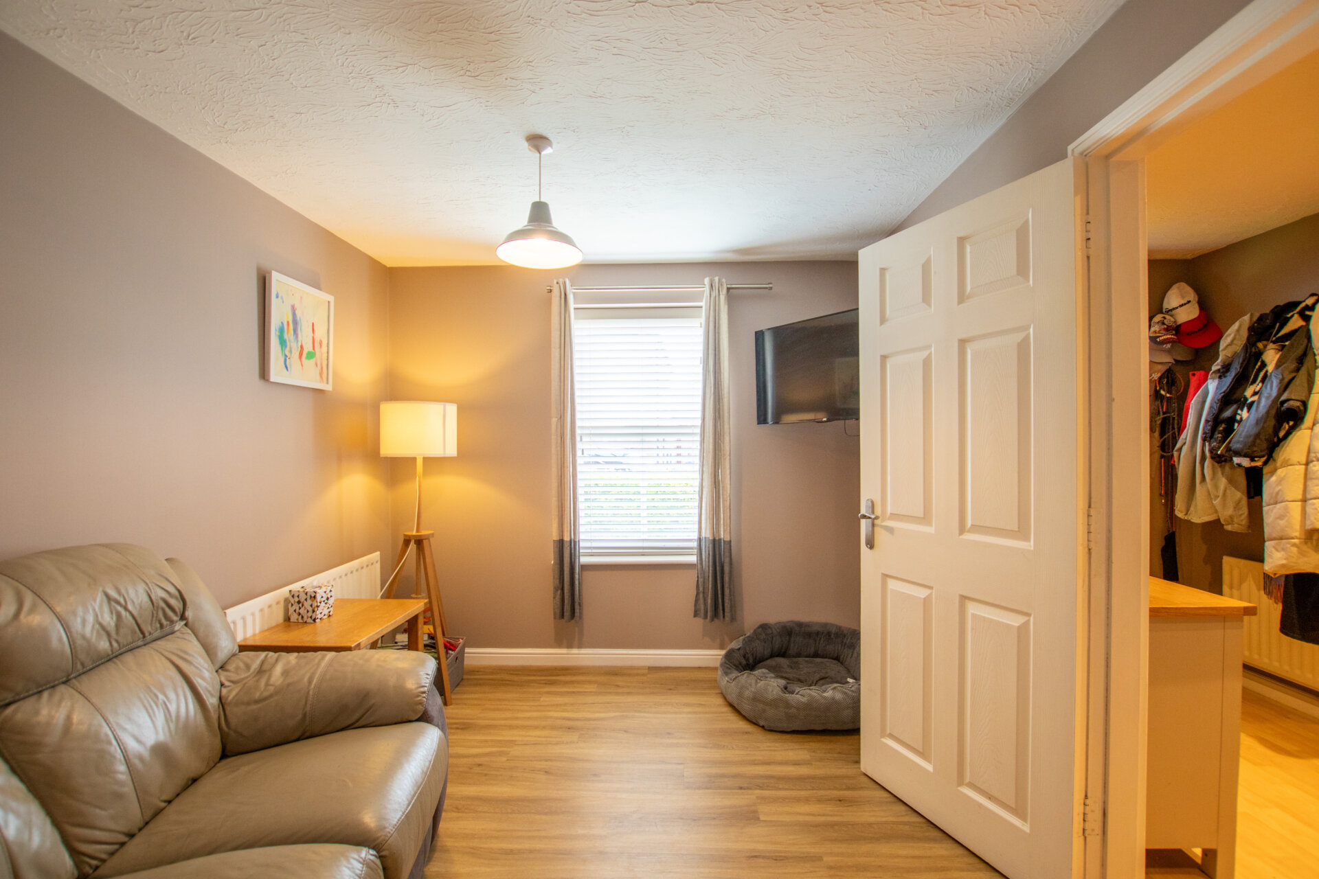 A smart three bedroomed modern townhouse with flexible accommodation arranged across three well-proportioned storey’s. The entrance hallway is large & spacious, there is a reception room at the front of the property that is flexible in its usage; some have as a playroom, dining room, office space. The kitchen is well stocked with storage options & a breakfast bar, that opens to another breakfast snug area. From here is a doorway to the utility room & cloakroom, and large garden room that is year round usable, with proper roof & insulation. The first floor consists of the main bedroom with built in wardrobes & ensuite shower room, and a spacious well lit sitting room. The top floor has two double bedrooms and the family bathroom. There is a loo on each floor, adding to the ease of flexible living. Externally is a smart garden space, having minimal maintenance, with a doorway into the back of the garage that has light and power connected. In front of the garage are off road parking spaces