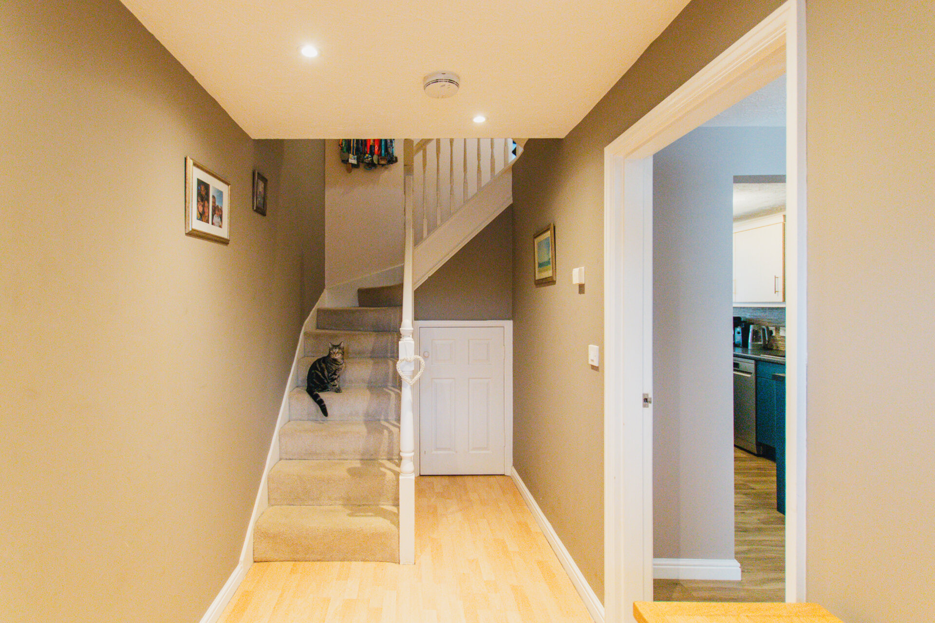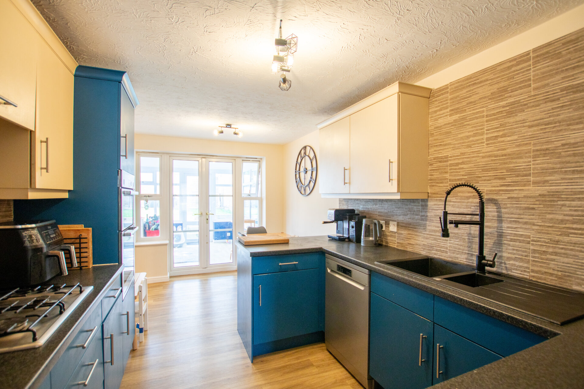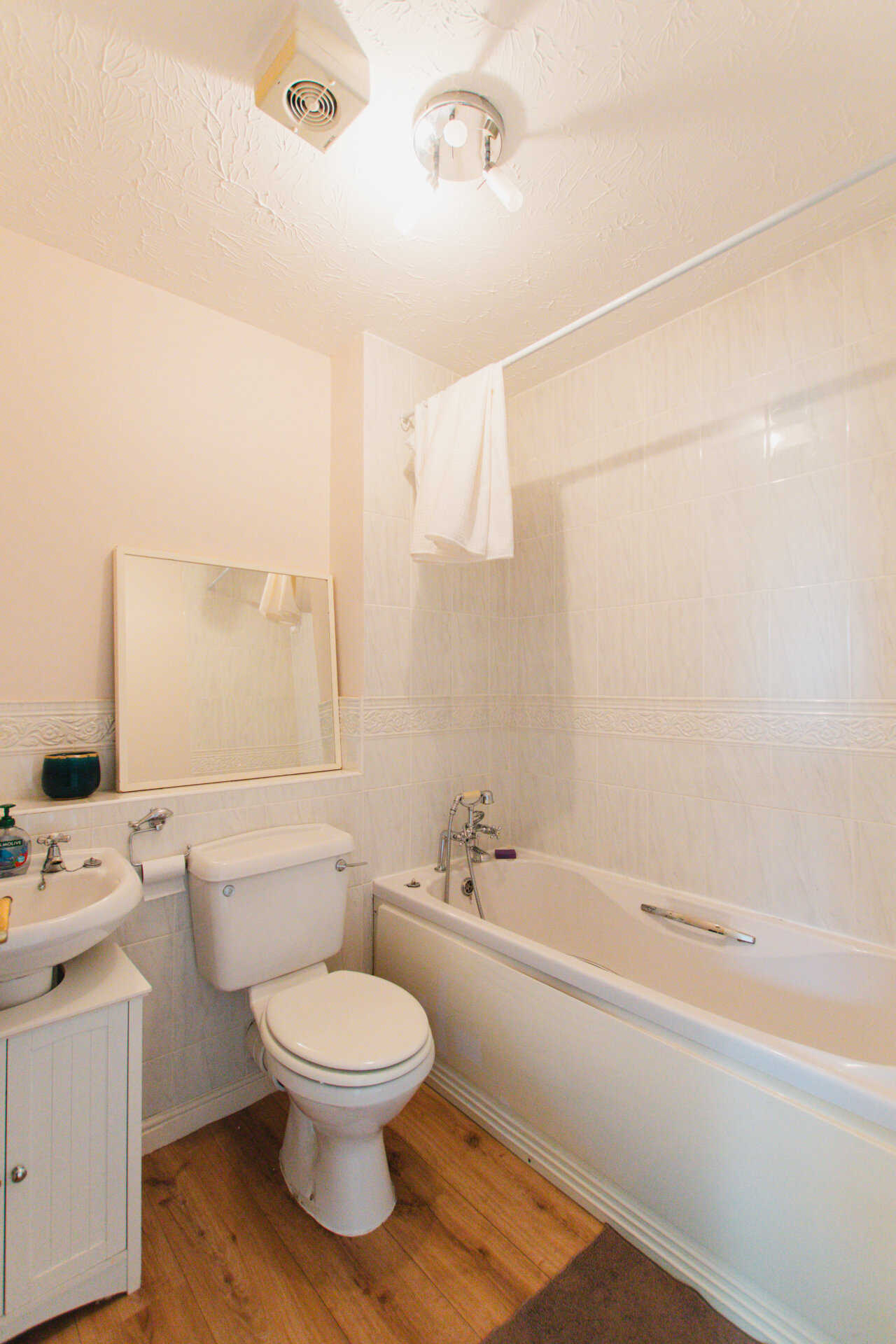 A smart three bedroomed modern townhouse with flexible accommodation arranged across three well-proportioned storey’s. The entrance hallway is large & spacious, there is a reception room at the front of the property that is flexible in its usage; some have as a playroom, dining room, office space. The kitchen is well stocked with storage options & a breakfast bar, that opens to another breakfast snug area. From here is a doorway to the utility room & cloakroom, and large garden room that is year round usable, with proper roof & insulation. The first floor consists of the main bedroom with built in wardrobes & ensuite shower room, and a spacious well lit sitting room. The top floor has two double bedrooms and the family bathroom. There is a loo on each floor, adding to the ease of flexible living. Externally is a smart garden space, having minimal maintenance, with a doorway into the back of the garage that has light and power connected. In front of the garage are off road parking spaces