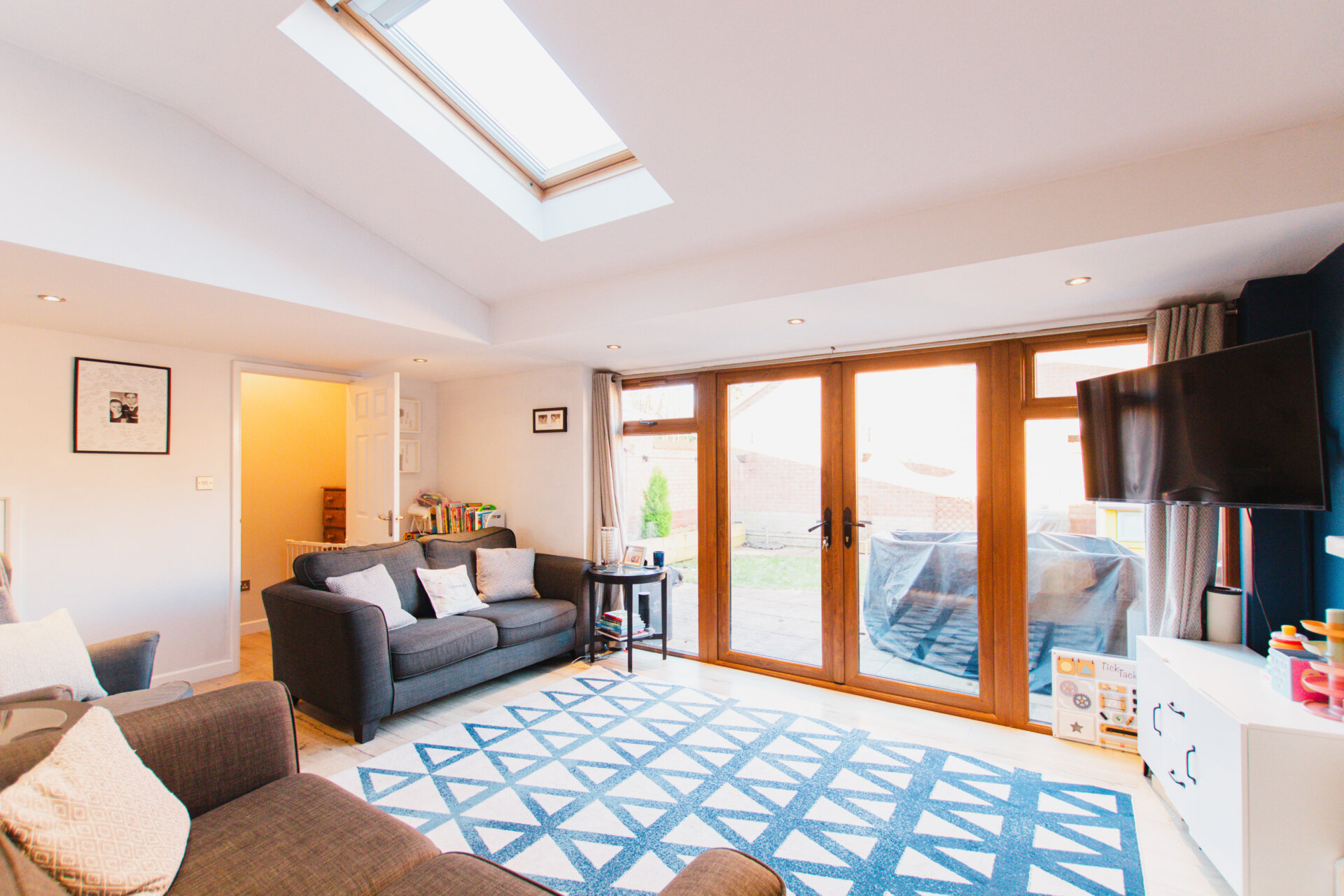 A beautifully presented four bedroomed family home, that is deceptively spacious and benefits from a unique & flexible layout, catering for a variety of requirements. The property has underdone extensive improvement & extension works to offer a functional & stylish living space. As seen on the floorplan there is scope to have an annexe, with one of the bedrooms currently having it’s own access, and ensuite. The current utility/ office is within the garage conversion. This could be a superb home business space, as the access is separate from the main house front door. The house comprises an entrance hall, open plan kitchen dining room, large sitting room, converted garage having office/ utility, four bedrooms, family bathroom, garden & driveway. The house is in very good condition throughout, those looking for a straight forward purchase should very much be viewing this house. The garden does enjoy a good degree of privacy, with the only window at the rear being a frosted bathroom window. There is a large patio space, lawn and raised beds.