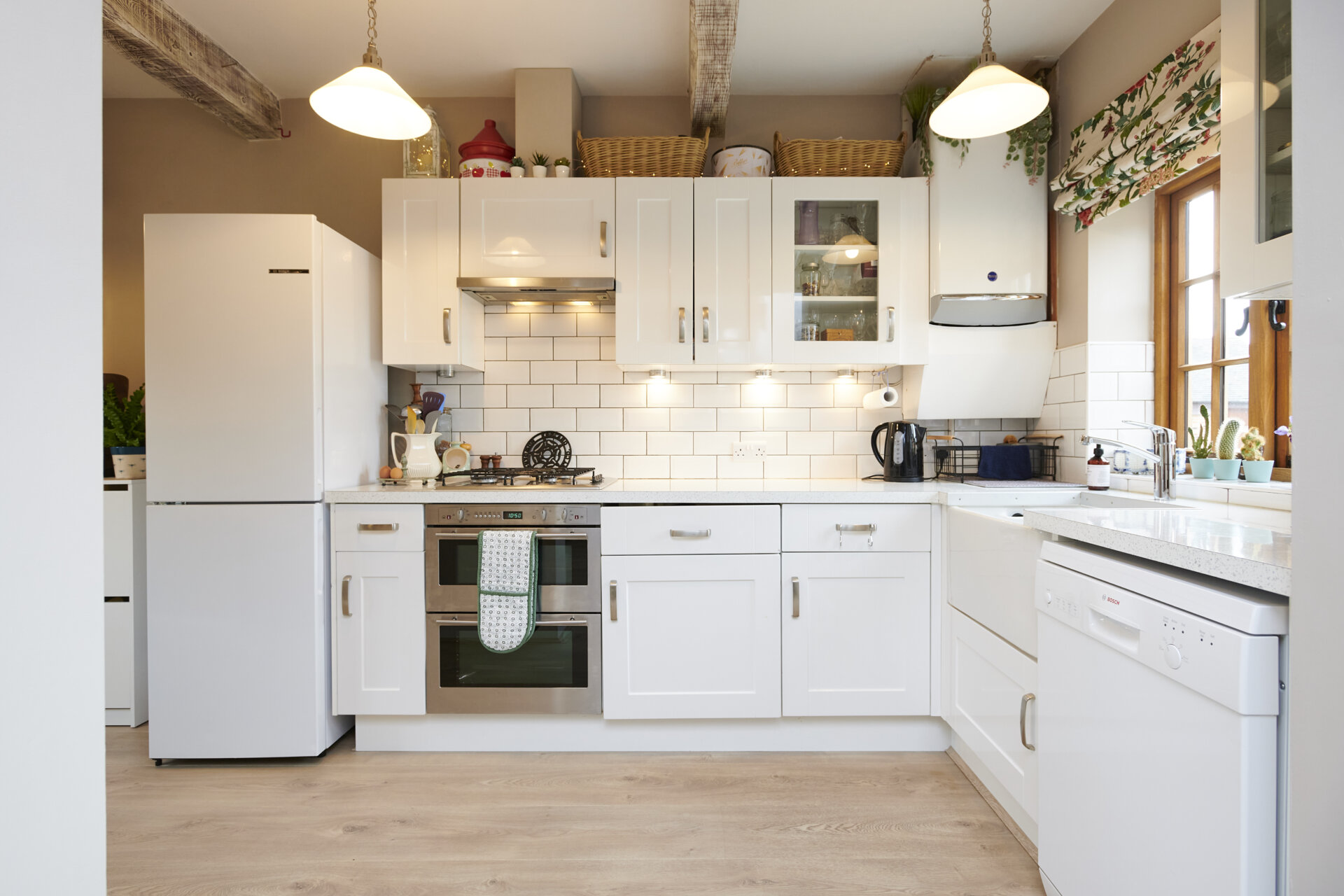 Double glazed door to enter in a bright and modern boot room area and kitchen. The kitchen has a range of wall and base units with square top work surfaces with tiled splash backs, inset 'Belfast' sink with mixer tap over, integrated washing machine, NEFF electric oven and gas hobs with extractor hood over, space for fridge freezer and dishwasher, ladder style radiator, wood effect laminate flooring, double glazed window to the rear elevation, wall mounted combination boiler and alarm system box.