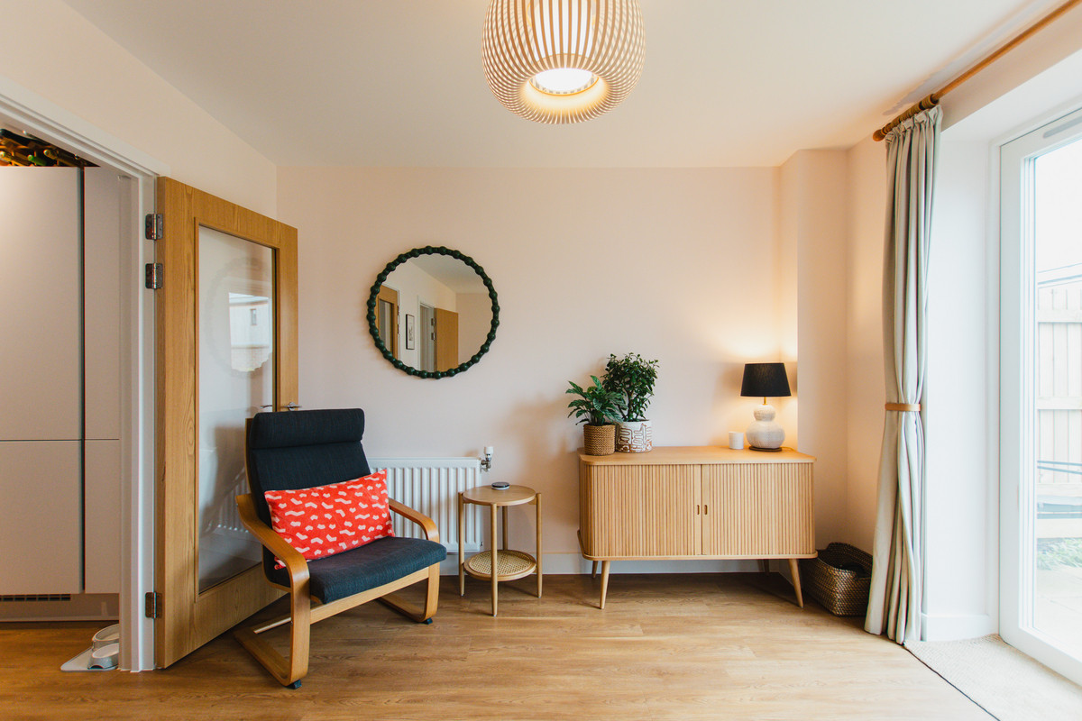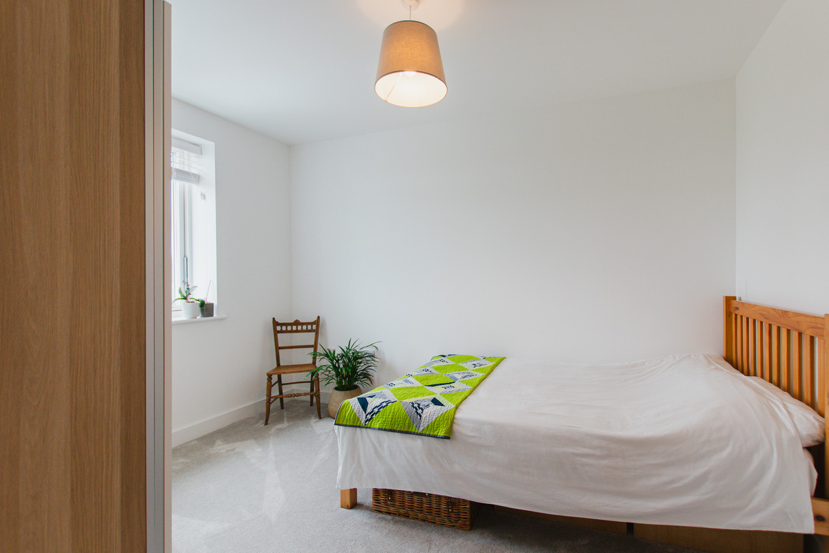 "The eco features of Elmsbrook are what drew us here, compared to other new developments in the area. Being able to buy a house that already has so many energy saving features is hard to find elsewhere. On a sunny day, we love being able to run multiple appliances without it costing us a thing. Elmsbrook is close to all local amenities - we regularly walk to the shops and park. The transport links to London are also a real selling point, whilst also being on the edge of the town and close to the countryside."