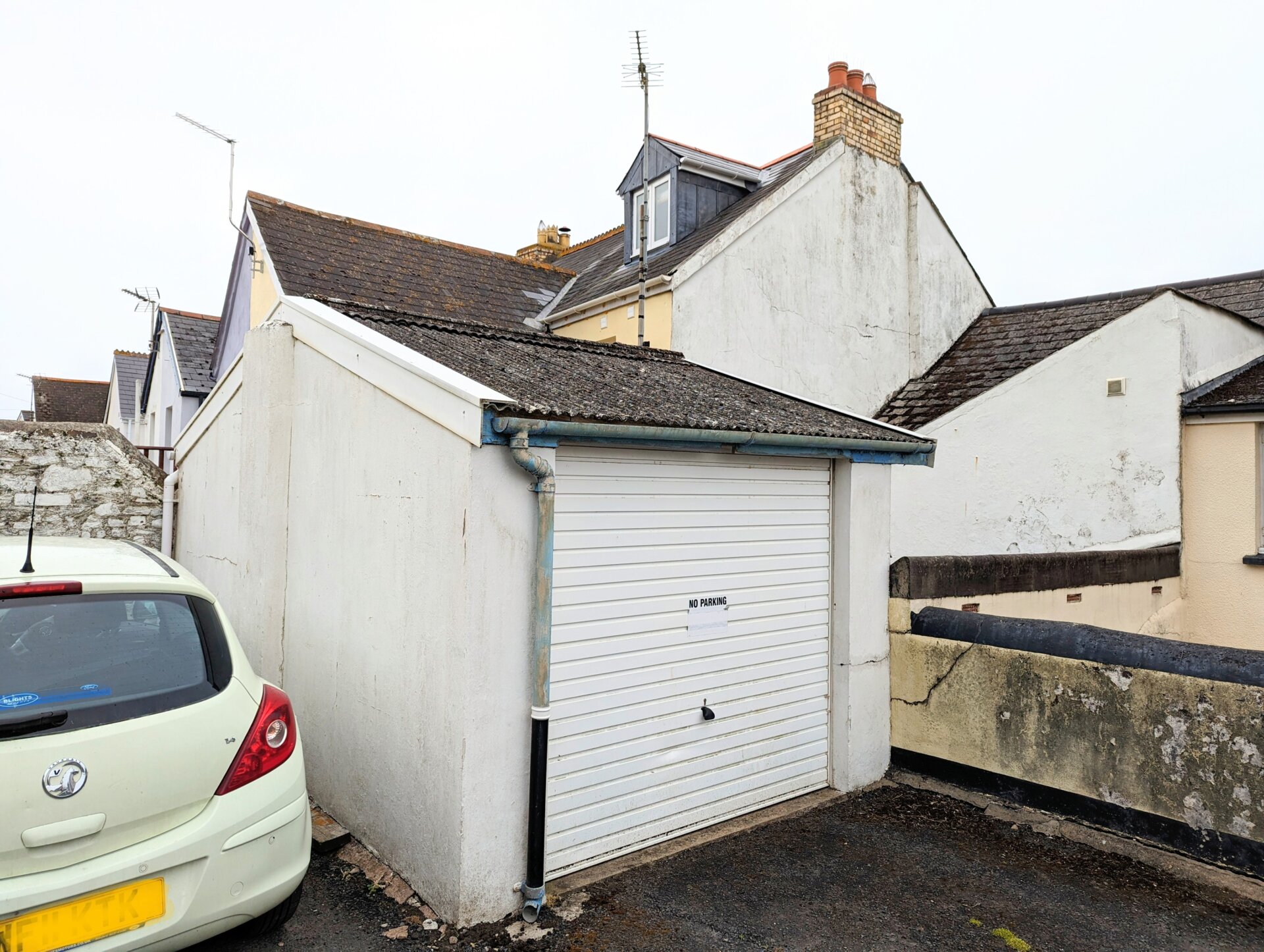 The garage could be used in many ways from parking one small car/motorbike, utilitised as private storage for bicycles, surfboards, canoes etc, or as a small workshop. Up and over door, windows and courtesy door to the rear with a staircase down to the yard, handy for unloading bags and shopping.