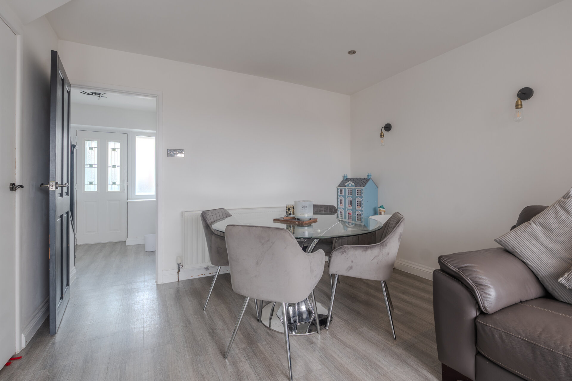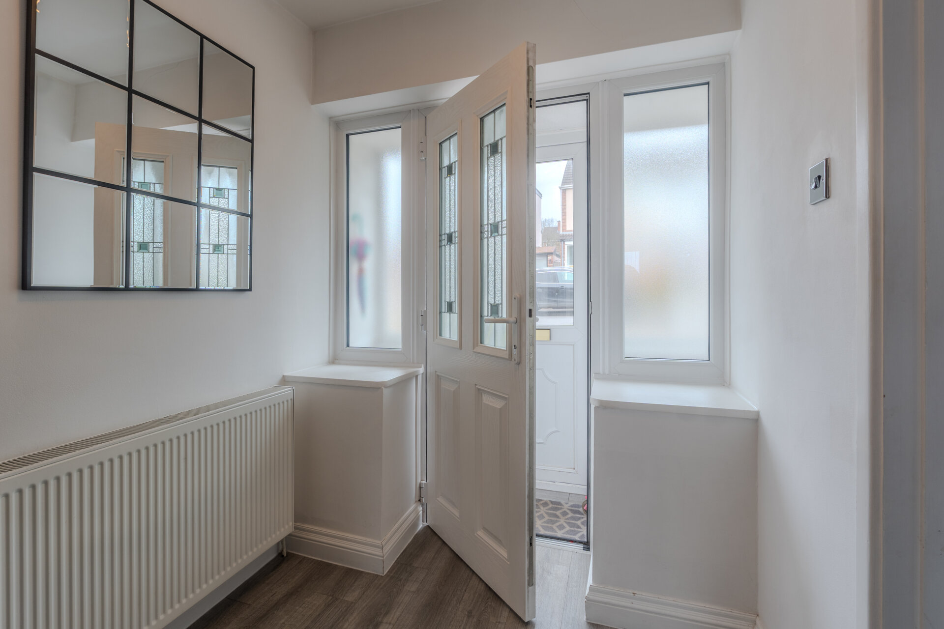 A Upvc porch, having laminate flooring, small storage cupboard and door giving access to the hallway.