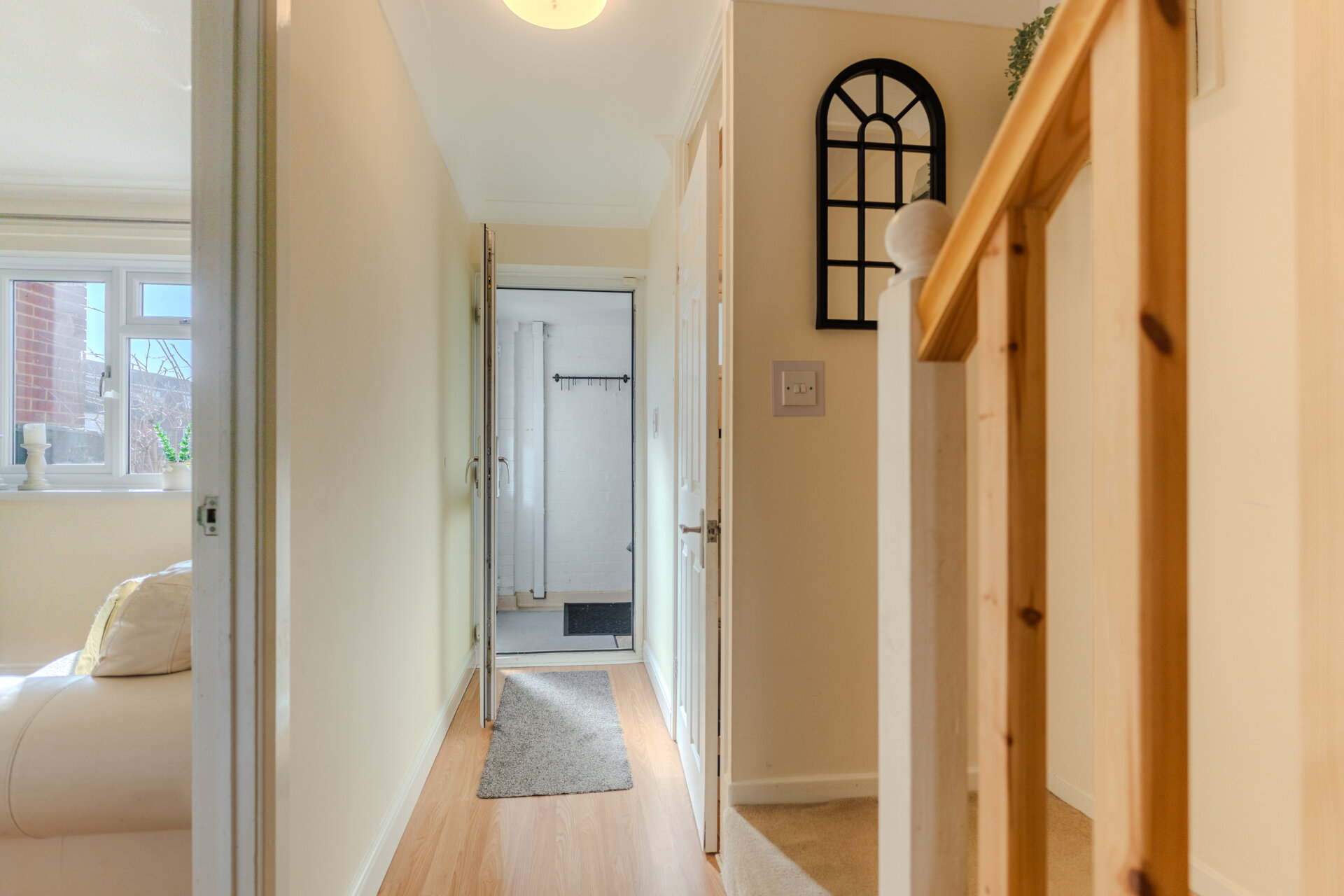 Having carpeted flooring, airing cupboard, access to three bedrooms, bathroom and light fitting to the ceiling.