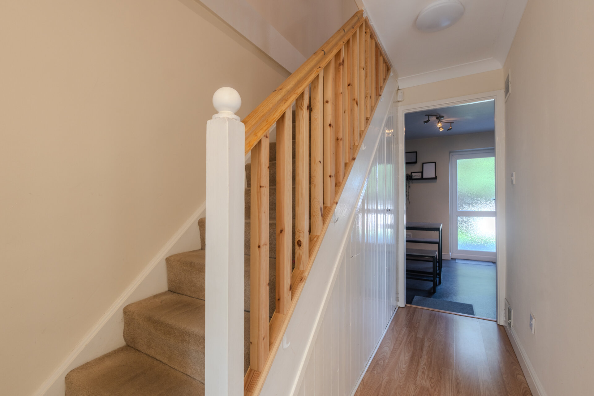 Good size hall, with laminate flooring, under the stair storage, access to the guest w.c, lounge, kitchen, with light fitting to the ceiling.
