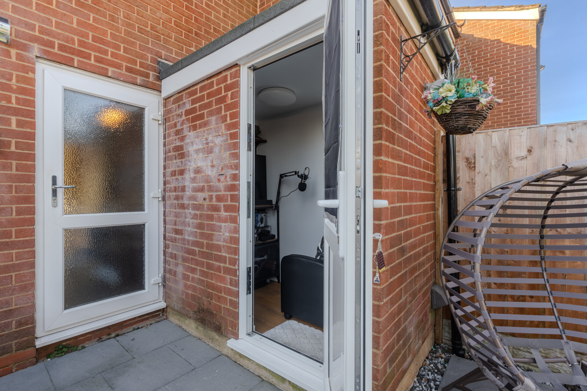 Upvc front door, giving access to the porch, with storage, opaque windows and Upvc door giving access to entrance hall.