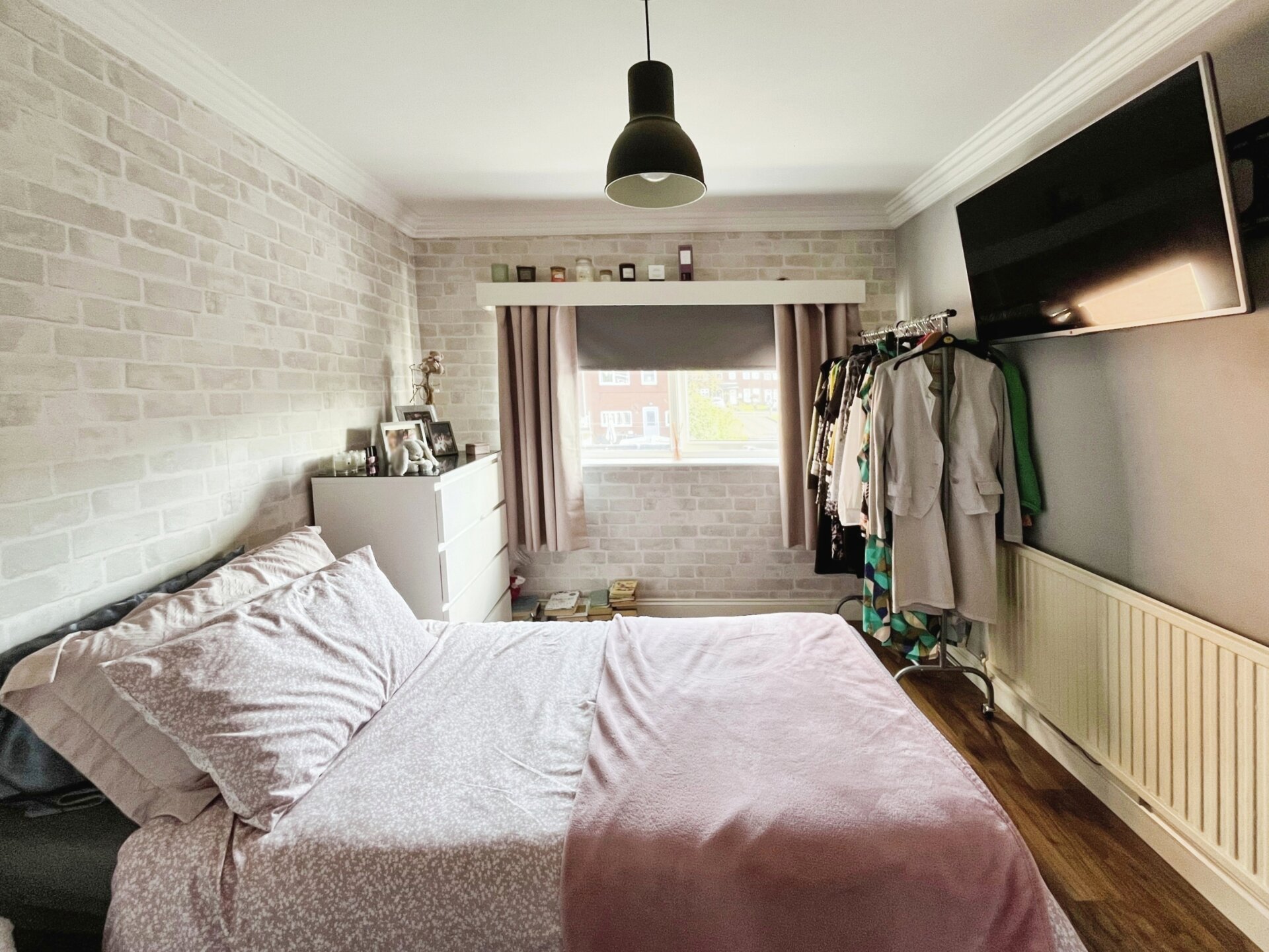 Having laminate flooring, radiator, windows to the front elevation, space for wardrobes and light fitting to the ceiling.