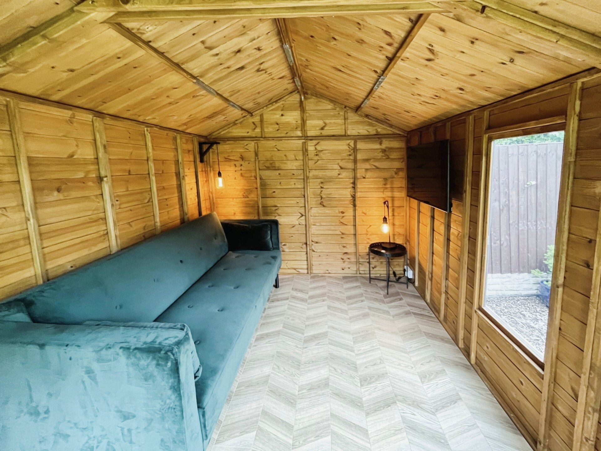 Particularly large garage, with bags of potential, plumbing for washing machine, boiler,sink and multiple electric points, two single glazed windows to the rear, door to the front accessing the front of the property and door to the rear giving access to the garden.