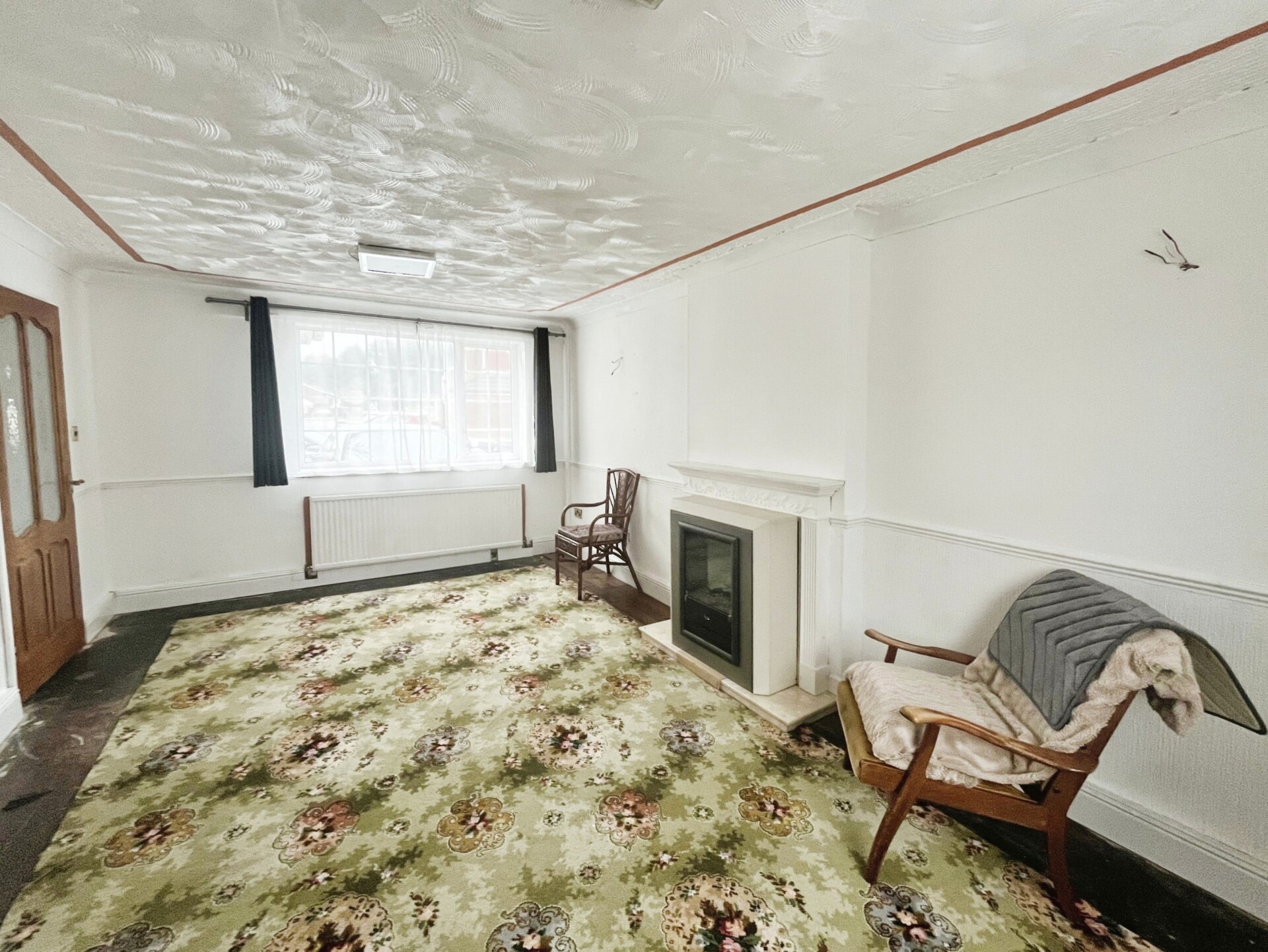 Having carpeted flooring, radiator, electric fire with surround, light fittings to the ceiling and windows over looking the front aspect and rear aspect.