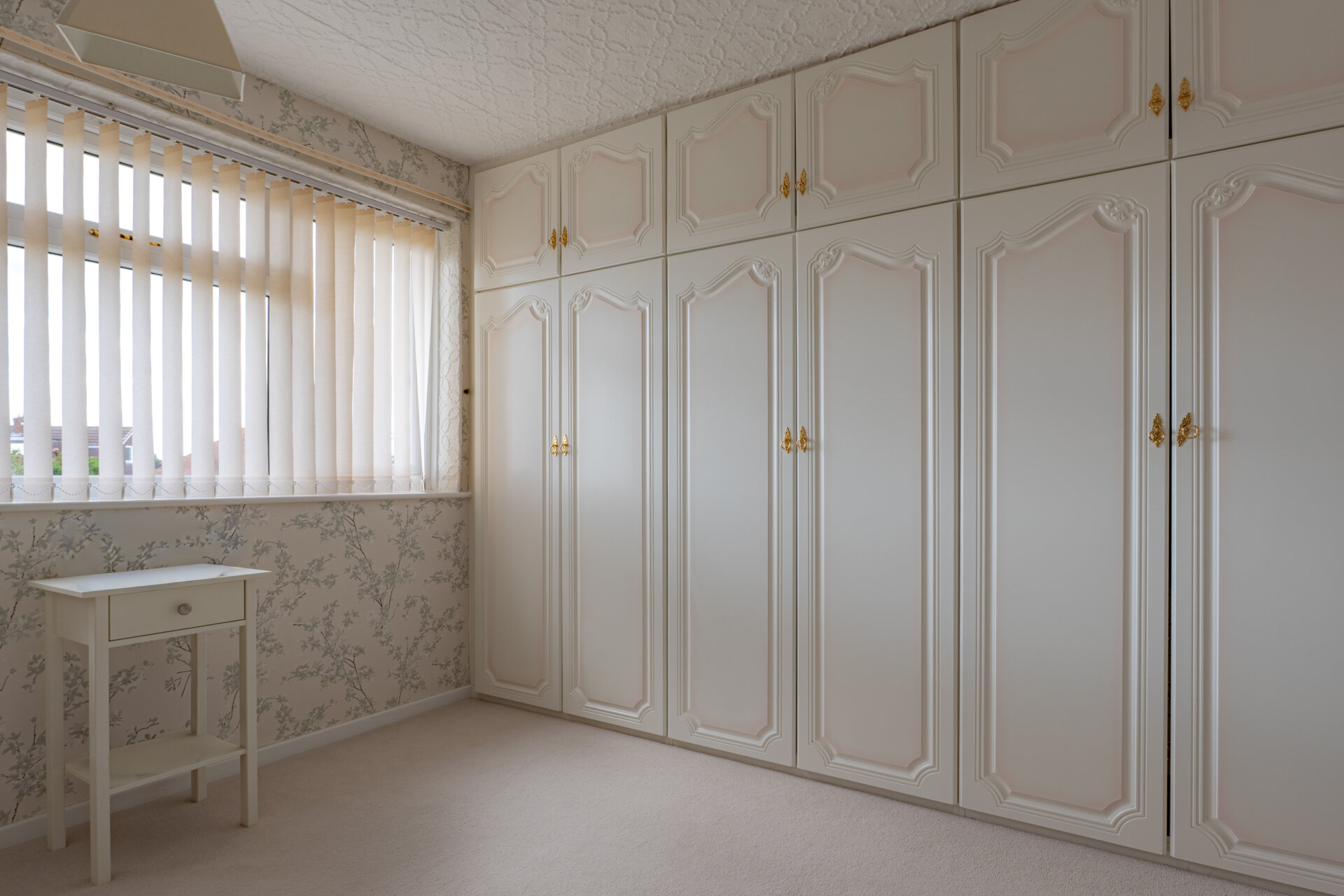 Having carpeted flooring, radiator, window to the rear elevation, fitted wardrobes to the side and light fitting to the ceiling.