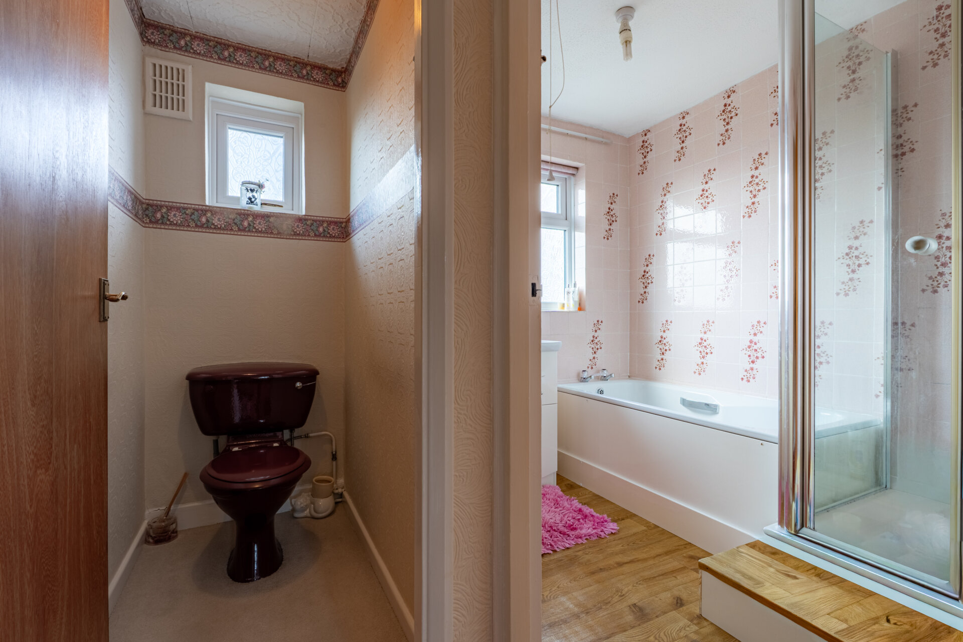 Having low level w.c, obscure window to rear and light fitting to the ceiling.