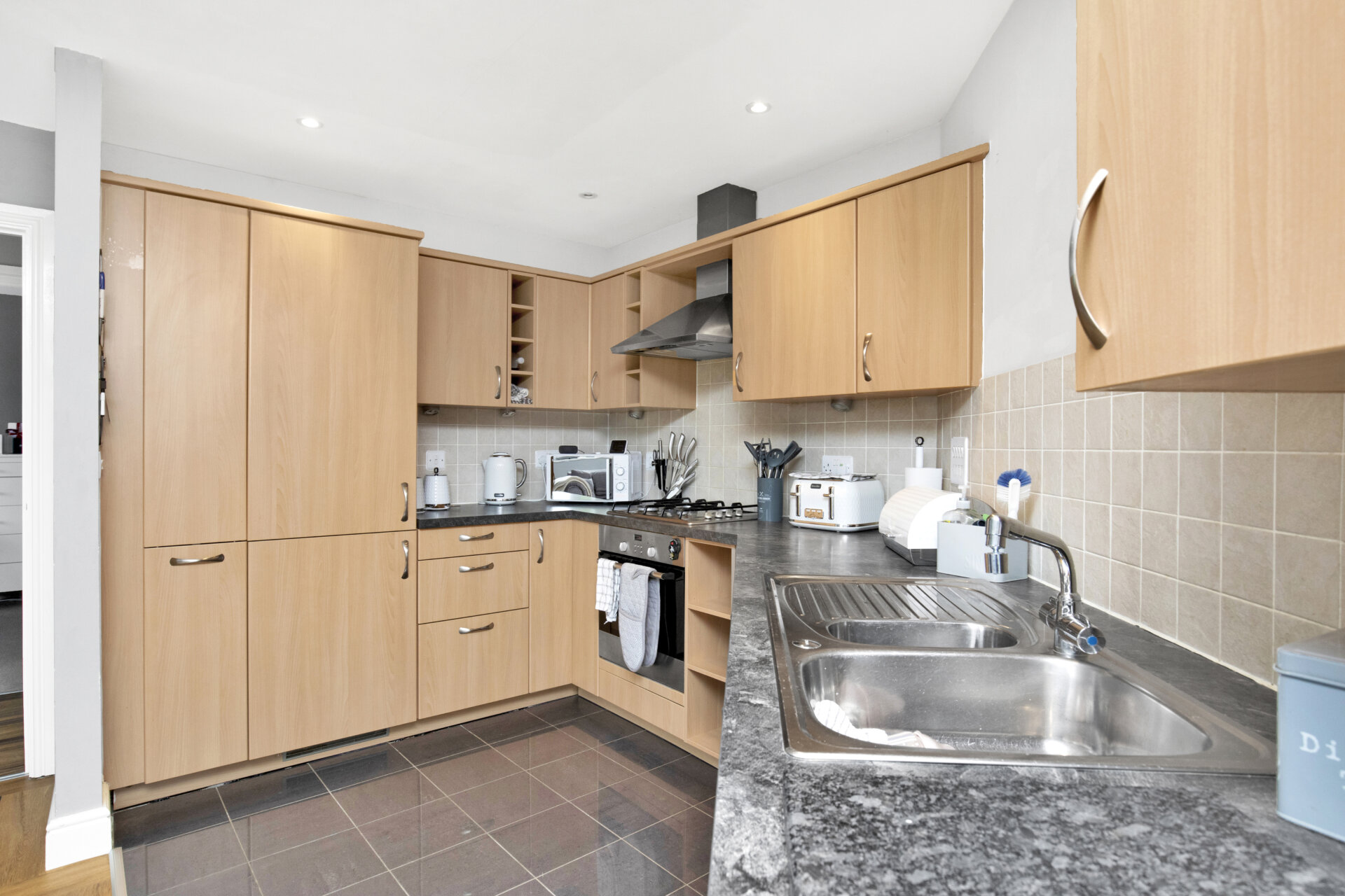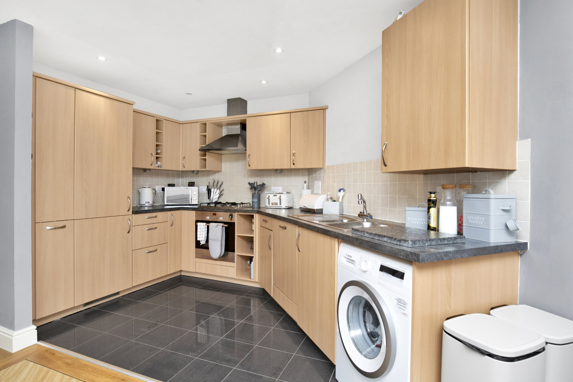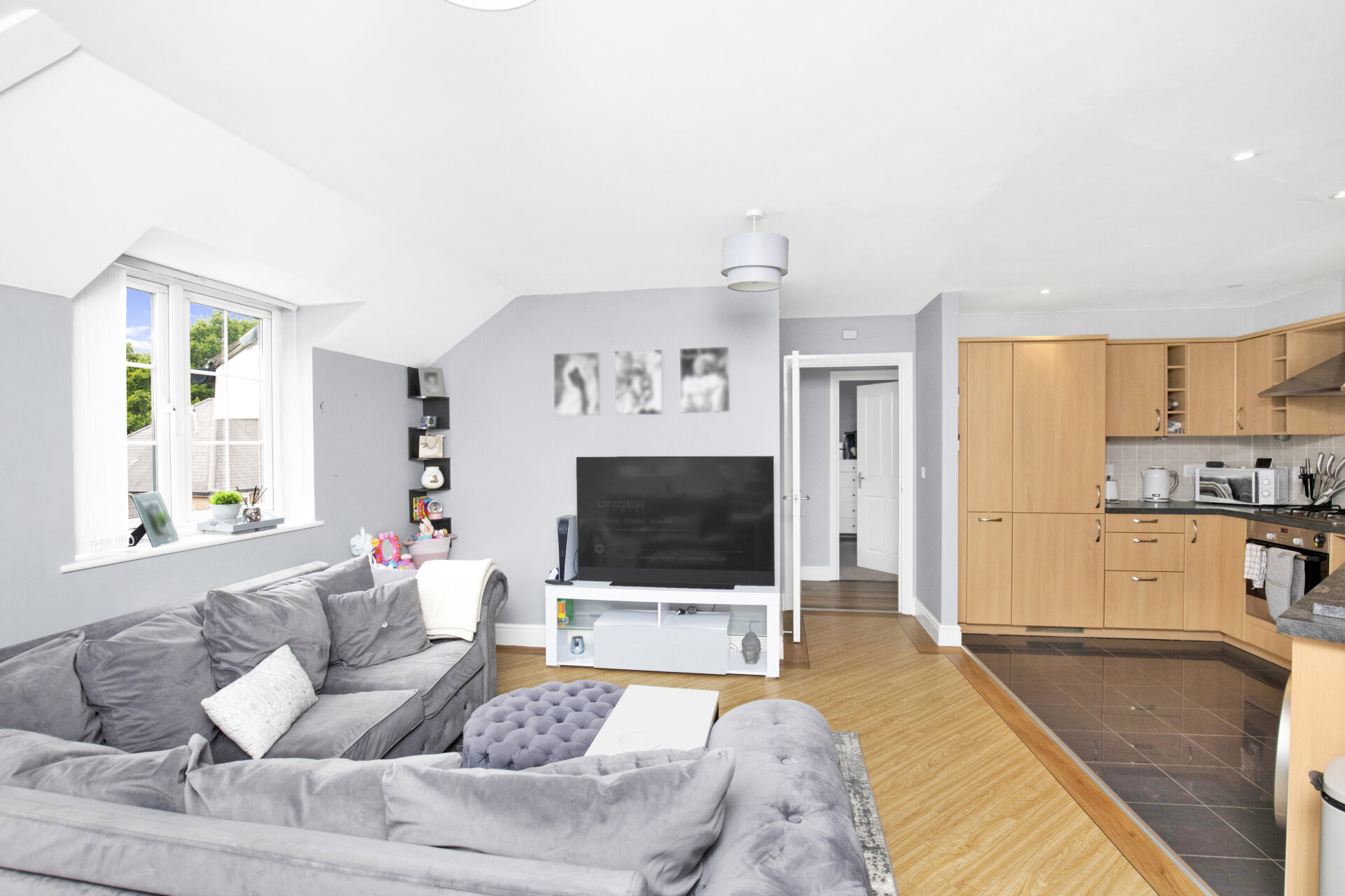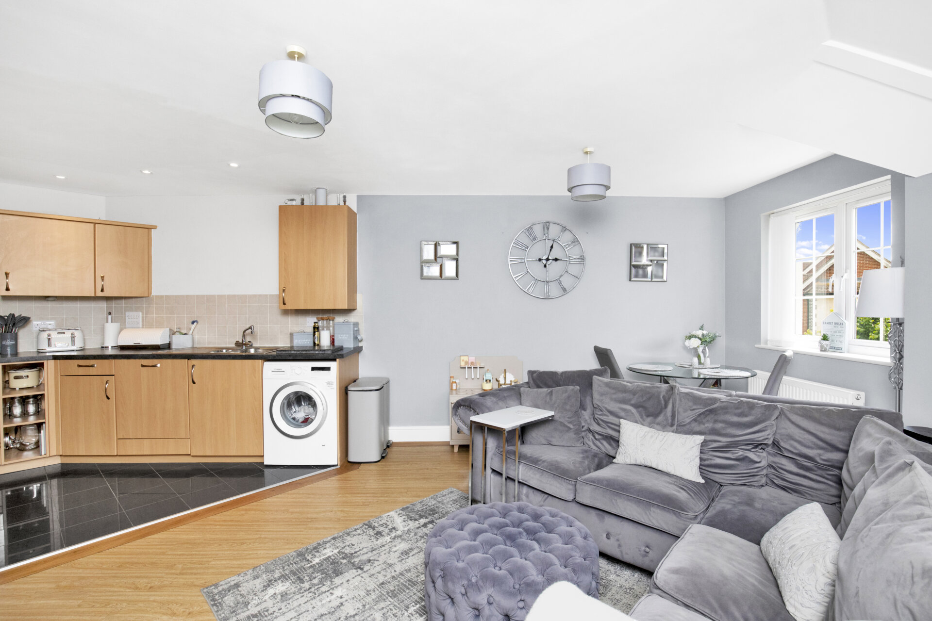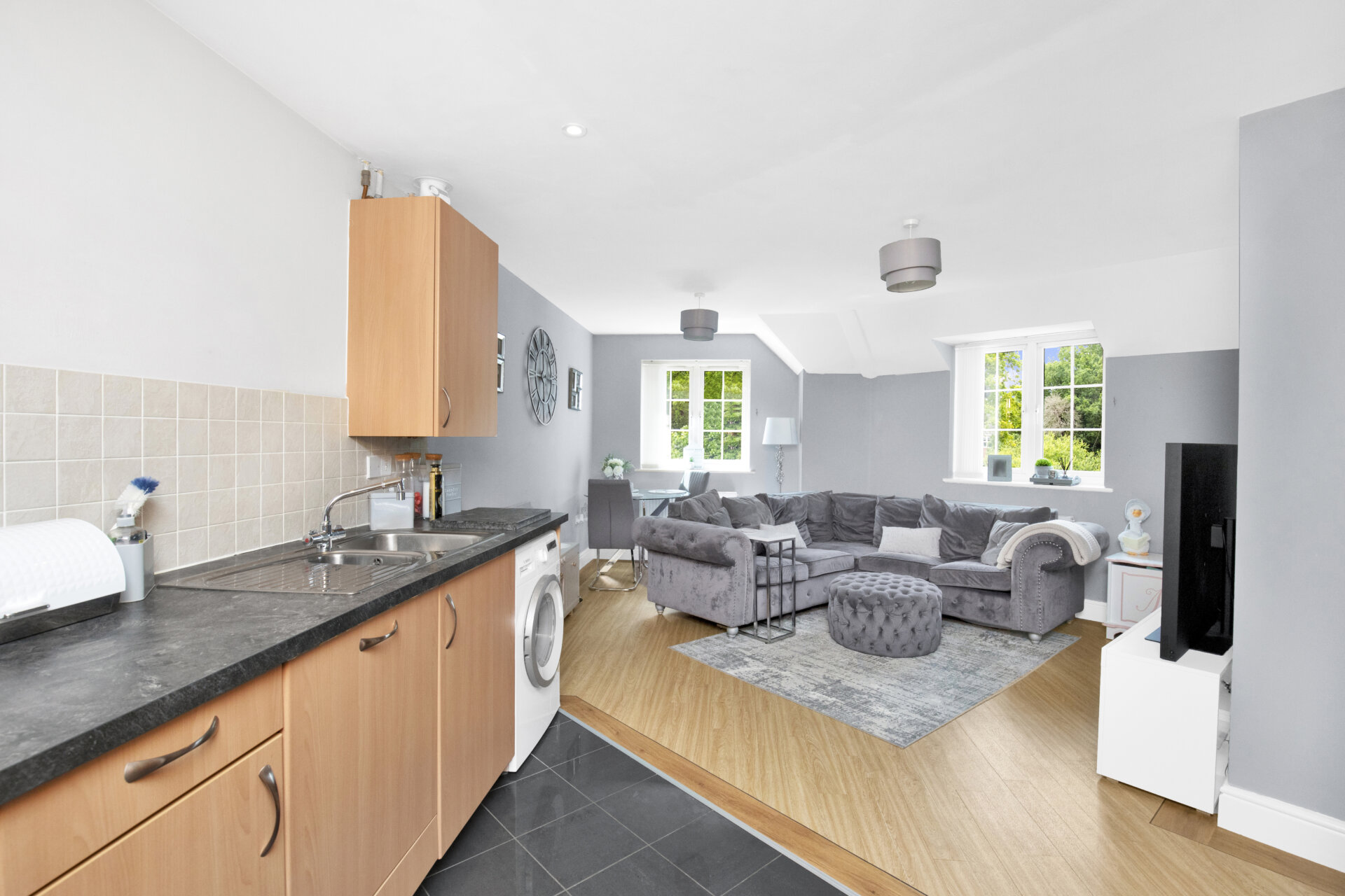 Step inside this beautifully presented two-bedroom top floor apartment, part of the Charles Church development. Boasting a modern, good sized kitchen and living area with built in appliances, generous cupboard space, dual aspect windows and a combination of wood effect flooring and tiling that separates the kitchen and living area.
