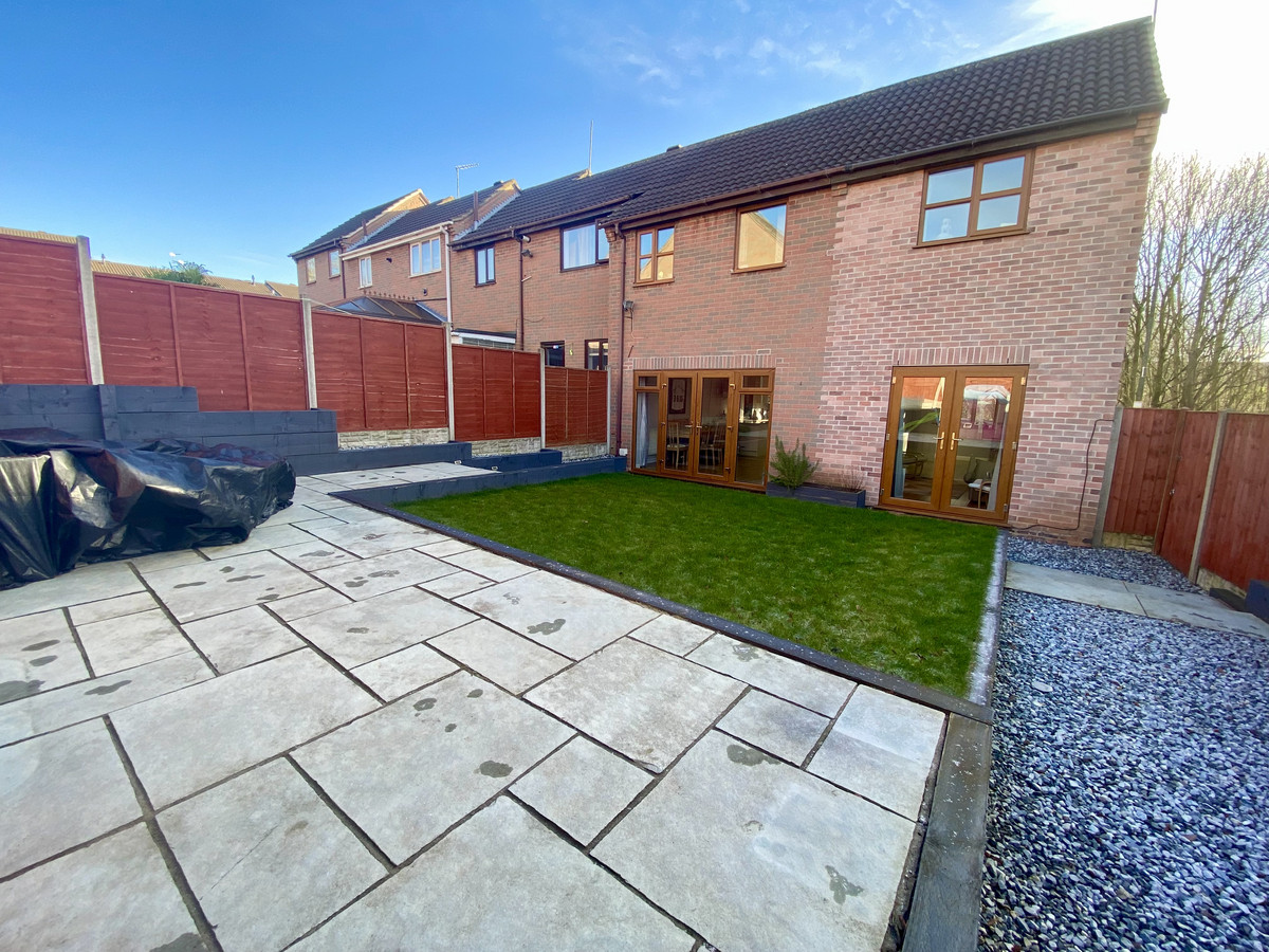 Centrally raised lawn area with large patio area to the rear, ideal for entertaining which maintains the sun until early evening. Gravel walkway to 2 sides with 8x6 shed.
