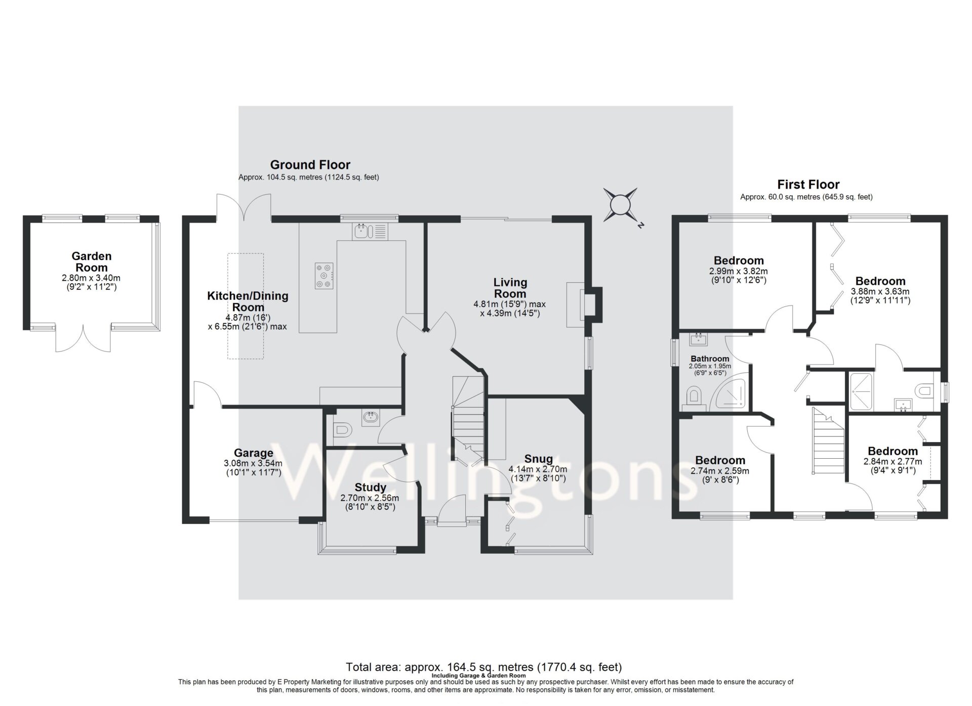 To the front of the property, there is a comfortable living room overlooking the garden, while a separate snug provides a cosy additional reception space. A dedicated study offers an ideal work-from-home setup, and there is also a utility area and downstairs cloakroom.